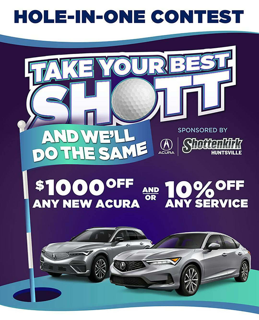 Take your best two putts for a chance to win $1,000 Off Any New Acura, 10% Off Any Service, or both! Sign up below and take your shot!