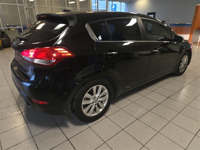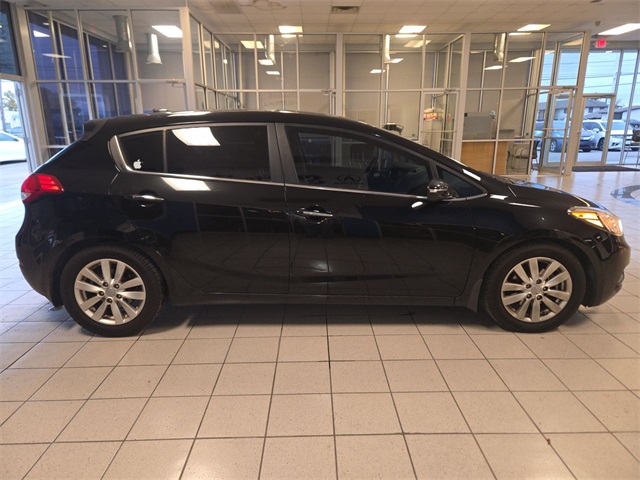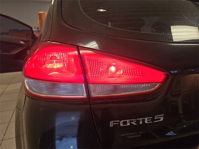 Aurora Black 2015 Kia Forte5 EX FWD 6-Speed Automatic with Overdrive 2.0L I4 DOHC CVVT 10-Way Power Adjustable Driver's Seat, 4-Wheel Disc Brakes, 6 Speakers, 6.5J x 16" Alloy Wheels, ABS brakes, Air Conditioning, Alloy wheels, AM/FM radio: SiriusXM, Auto-Dimming Rear-View Mirror, Brake assist, Bumpers: body-color, Carpeted Floor Mats, CD player, Cloth Seat Trim, Delay-off headlights, Door Handle Pocket Light, Driver door bin, Driver vanity mirror, Driver's Seat w/2 Memory Presets, Dual front impact airbags, Dual front side impact airbags, Electronic Stability Control, EX Premium Package, Front anti-roll bar, Front Bucket Seats, Front Center Armrest, Front fog lights, Front reading lights, Front wheel independent suspension, Fully automatic headlights, Heated door mirrors, Heated Front Seats, Heated Rear Seats Bottom, Heated Steering Wheel, Illuminated entry, Immobilizer, Leather Seat Trim, Leather Shift Knob, Leather steering wheel, Low tire pressure warning, Mudguards, Occupant sensing airbag, Outside temperature display, Overhead airbag, Overhead console, Panic alarm, Passenger door bin, Passenger vanity mirror, Perimeter Approach Lighting, Power door mirrors, Power steering, Power Sunroof, Power windows, Push Button Start w/Smart Key, Radio: AM/FM/CD/MP3/SiriusXM Audio System, Rear seat center armrest, Rear window defroster, Rear window wiper, Remote keyless entry, Speed control, Speed-sensing steering, Split folding rear seat, Spoiler, Steering wheel mounted audio controls, Tachometer, Telescoping steering wheel, Tilt steering wheel, Traction control, Trip computer, Turn signal indicator mirrors, UVO eServices w/Rear Camera Display, Variably intermittent wipers, Ventilated Driver's Seat.