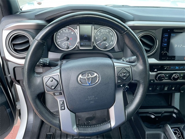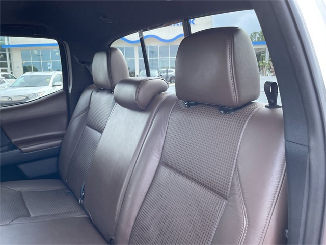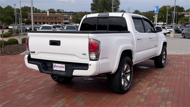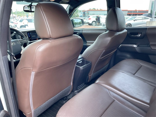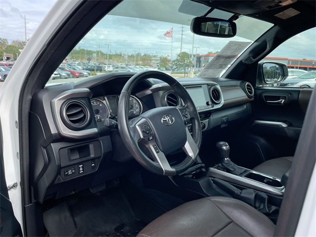 2016 Toyota Tacoma Limited V6 Limited White 4D Double Cab V6 V6 6-Speed Automatic RWD This vehicle comes well equipped with 7 Speakers, ABS brakes, Air Conditioning, Alloy wheels, AM/FM radio: SiriusXM, Anti-whiplash front head restraints, Auto-dimming Rear-View mirror, Automatic temperature control, Axle Ratio: 3.91, Brake assist, Bumpers: body-color, CD player, Compass, Driver door bin, Driver vanity mirror, Dual front impact airbags, Dual front side impact airbags, Electronic Stability Control, Exterior Parking Camera Rear, Front anti-roll bar, Front Bucket Seats, Front Center Armrest, Front dual zone A/C, Front fog lights, Front reading lights, Front wheel independent suspension, Garage door transmitter: HomeLink, Illuminated entry, Knee airbag, Leather Seat Trim, Leather Shift Knob, Low tire pressure warning, Navigation System, Occupant sensing airbag, Outside temperature display, Overhead airbag, Overhead console, Panic alarm, Passenger door bin, Passenger vanity mirror, Power door mirrors, Power moonroof, Power steering, Power windows, Radio: Entune Premium JBL AM/FM/CD w/Nav & App Ste, Rear Parking Sensors, Rear step bumper, Remote keyless entry, Security system, Speed control, Speed-sensing steering, Split folding rear seat, Steering wheel mounted audio controls, Tachometer, Telescoping steering wheel, Tilt steering wheel, Traction control, Trip computer, Turn signal indicator mirrors, Variably intermittent wipers, and Wheels: 18" x 7.5" Polished Alloy.