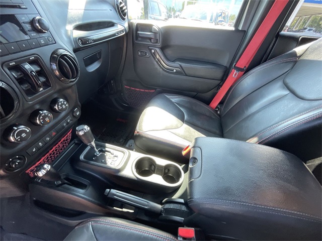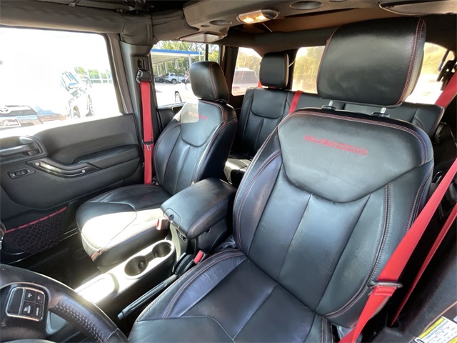 2017 Jeep Wrangler Unlimited Rubicon Recon Unlimited Rubicon Recon Granite Crystal Metallic Clearcoat 4D Sport Utility 3.6L V6 24V VVT 5-Speed Automatic 4WD This vehicle comes well equipped with Recon Package Recon Package, Connectivity Group (Remote USB Port, Tire Pressure Monitoring Display, Uconnect Voice Command w/Bluetooth, and Vehicle Information Center), Max Tow Package (Class II Receiver Hitch and Trailer Tow w/4-Pin Connector Wiring), Quick Order Package 24Z Rubicon Recon (Accent Stitching, Air Conditioning w/Auto Temperature Control, Air Filtering, Black Fuel Filler Door, Dana 44/226MM Rear Axle, Dana M44/216MM Front Axle, HD Rock Rails w/Step Pad, Heated Front Seats, Hood w/Power Dome, Humidity Sensor, Jeep Trail Rated Kit, Logloss Granite Crystal Jeep Badge, Low Gloss Black Wrangler Decal, Midnight Star Interior Accents, MOPAR Black Tail Lamp Guards, MOPAR Coat Hooks & Grab Handles, MOPAR Slush Mats w/Red Accents, Premium Black Sunrider Soft Top, Premium EVIC Message Center, R1234YF A/C Refrigerant, Recon Badge, Recon Decals, Recon Grille, Recon Leather Seats, Red Front & Rear Tow Hooks, Red Seat Belts, Red Switches, Red Trail Rated Badge, Remote Start System, Steel Front Bumper, Steel Rear Bumper, and Wheels: 17" x 7.5" Granite Crystal Aluminum), 17" x 7.5" Polished Mineral Gray Wheels, 4-Wheel Disc Brakes, 4.10 Rear Axle Ratio, 8 Speakers, ABS brakes, Add 4.10 Axle Ratio, Air Conditioning, Alloy wheels, AM/FM radio: SiriusXM, Audio Jack Input for Mobile Devices, Auto-dimming Rear-View mirror, Brake assist, CD player, Cloth Seats w/Adjustable Head Restraints, Compass, Driver door bin, Driver vanity mirror, Dual front impact airbags, Electronic Stability Control, Front anti-roll bar, Front Bucket Seats, Front Center Armrest w/Storage, Front fog lights, Front reading lights, Fully automatic headlights, Heated door mirrors, Illuminated entry, Integrated roll-over protection, Leather steering wheel, Low tire pressure warning, Occupant sensing airbag, Outside temperature display, Panic alarm, Passenger door bin, Passenger vanity mirror, Performance Suspension, Power door mirrors, Power steering, Power windows, Radio data system, Radio: 130, Rear anti-roll bar, Remote keyless entry, Security system, Speed control, Split folding rear seat, Steering wheel mounted audio controls, Tachometer, Tilt steering wheel, Traction control, Trip computer, and Variably intermittent wipers.