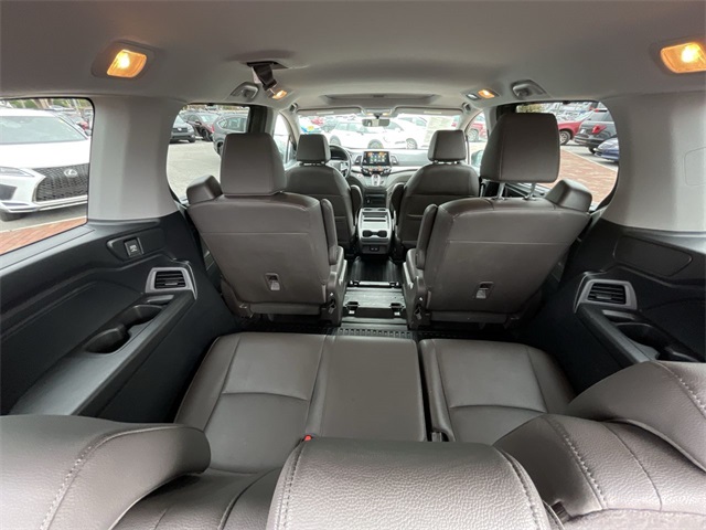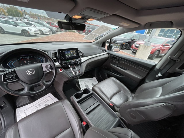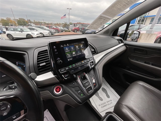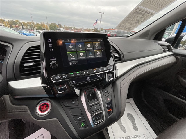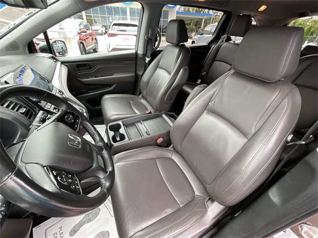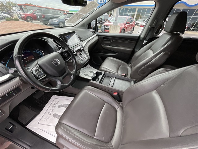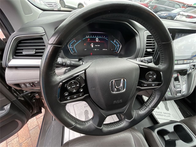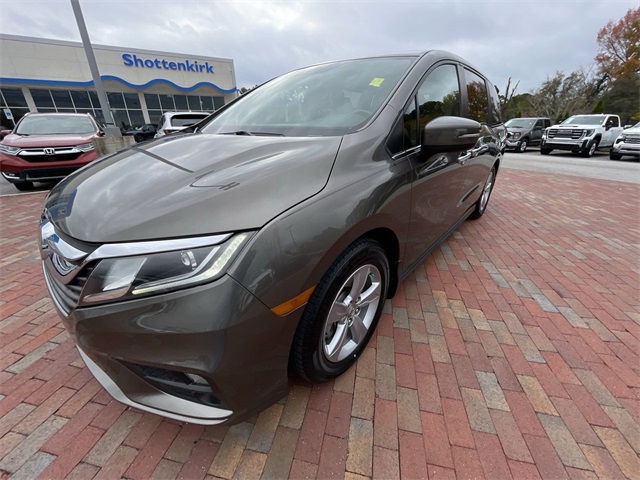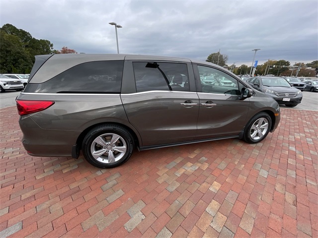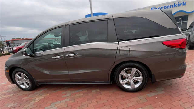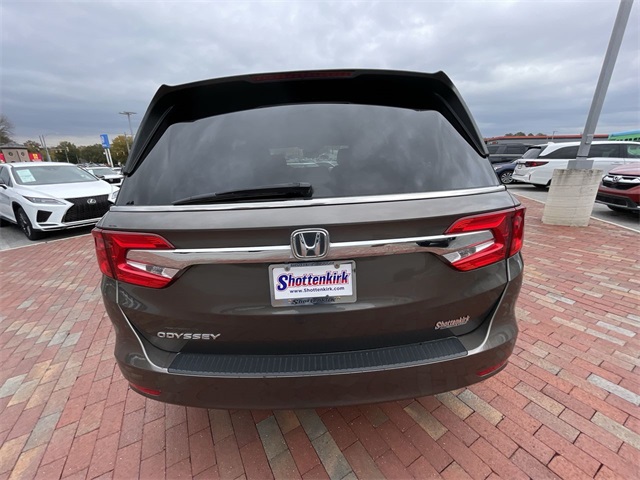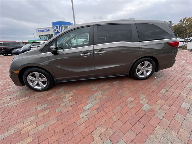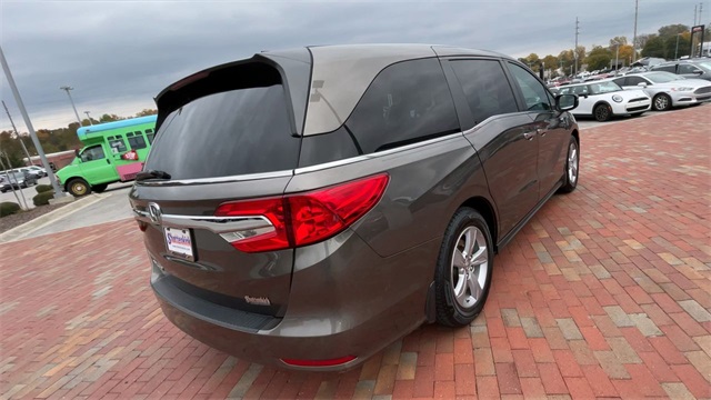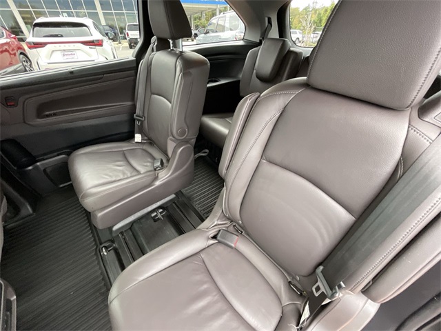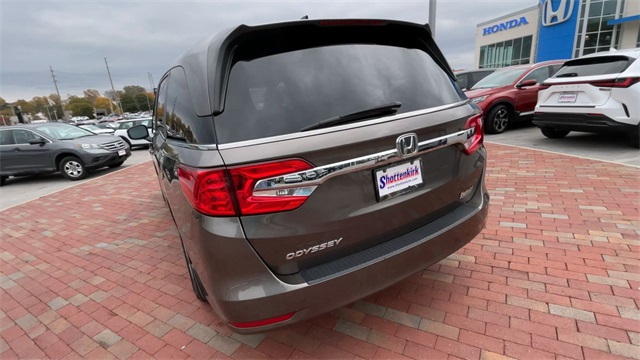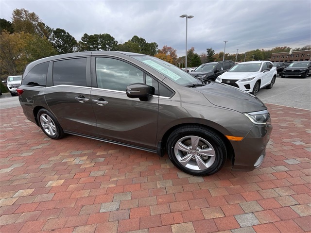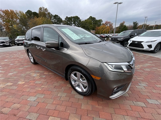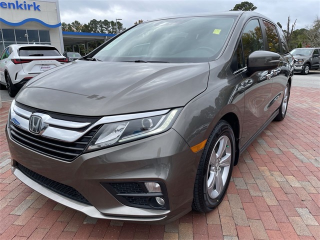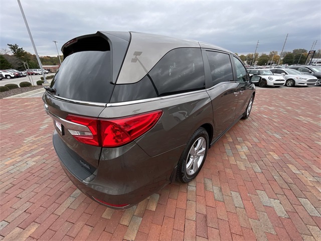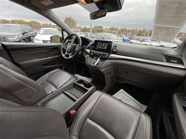 2019 Honda Odyssey EX-L EX-L Pacific Pewter Metallic 4D Passenger Van 3.5L V6 SOHC i-VTEC 24V 9-Speed Automatic FWD This vehicle comes well equipped with 3rd row seats: split-bench, 4-Wheel Disc Brakes, 4.33 Axle Ratio, 7 Speakers, A/V remote: CabinControl, ABS brakes, Air Conditioning, Alloy wheels, AM/FM radio: SiriusXM, Anti-whiplash front head restraints, Apple CarPlay/Android Auto, Auto High-beam Headlights, Auto-dimming Rear-View mirror, Automatic temperature control, Blind Spot Information (BSI) System warning, Brake assist, Bumpers: body-color, Delay-off headlights, Driver door bin, Driver vanity mirror, Driver's Seat Mounted Armrest, Dual front impact airbags, Dual front side impact airbags, Electronic Stability Control, Emergency communication system: HondaLink, Exterior Parking Camera Rear, Forward collision: Collision Mitigation Braking System (CMBS) + FCW mitigation, Four wheel independent suspension, Front anti-roll bar, Front Bucket Seats, Front dual zone A/C, Front fog lights, Front reading lights, Fully automatic headlights, Garage door transmitter: HomeLink, Heated door mirrors, Heated Front Bucket Seats, Heated front seats, Illuminated entry, Knee airbag, Lane departure: Lane Keeping Assist System (LKAS) active, Leather Seat Trim, Leather steering wheel, Low tire pressure warning, Memory seat, Occupant sensing airbag, Outside temperature display, Overhead airbag, Overhead console, Panic alarm, Passenger door bin, Passenger seat mounted armrest, Passenger vanity mirror, Power door mirrors, Power driver seat, Power Liftgate, Power moonroof, Power passenger seat, Power steering, Power windows, Radio data system, Radio: 160-Watt AM/FM/HD/SiriusXM Audio System, Rear air conditioning, Rear anti-roll bar, Rear reading lights, Rear seat center armrest, Rear window defroster, Rear window wiper, Reclining 3rd row seat, Remote keyless entry, Security system, Speed control, Speed-sensing steering, Speed-Sensitive Wipers, Split folding rear seat, Spoiler, Steering wheel mounted audio controls, Tachometer, Telescoping steering wheel, Tilt steering wheel, Traction control, Trip computer, Turn signal indicator mirrors, Variably intermittent wipers, and Wheels: 18" Dark Silver-Painted Alloy.