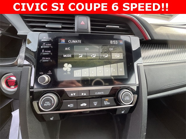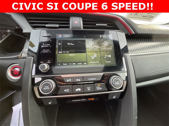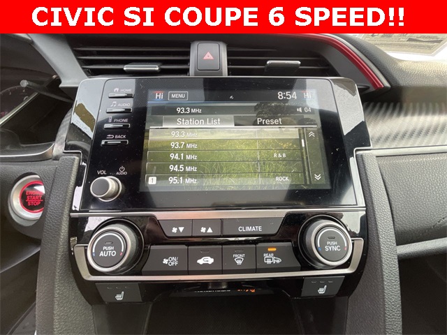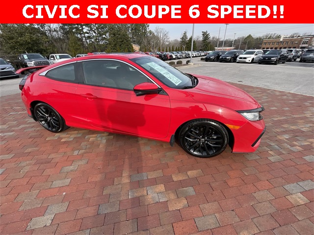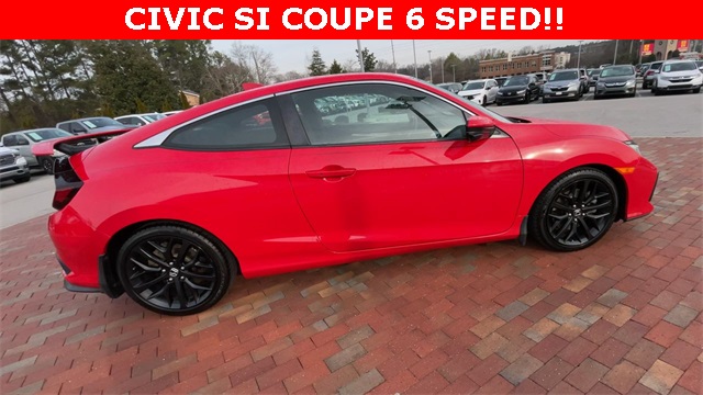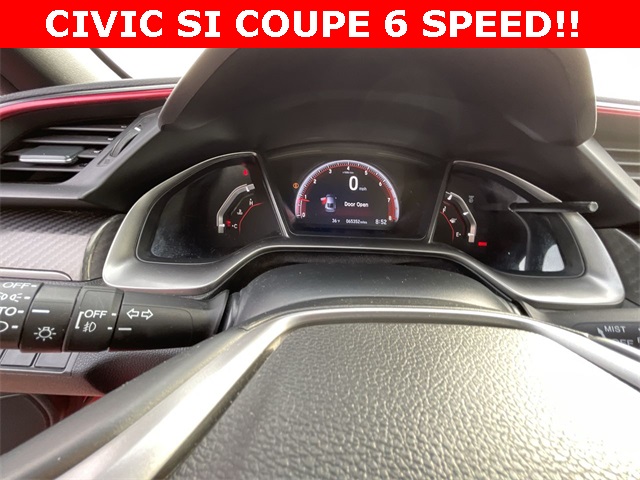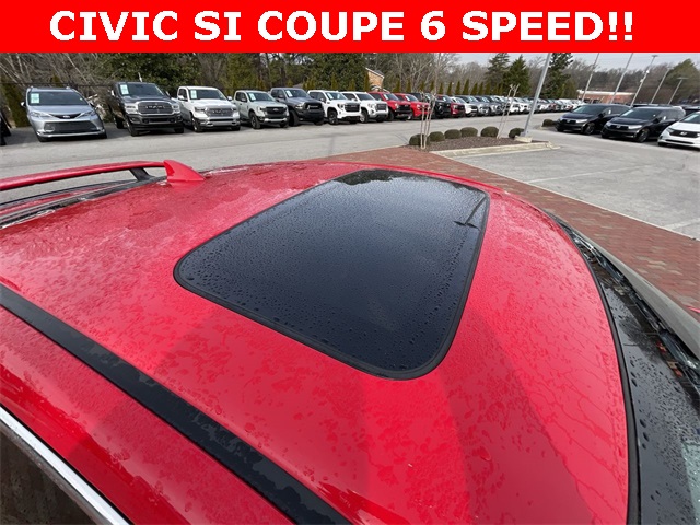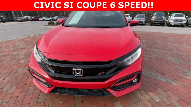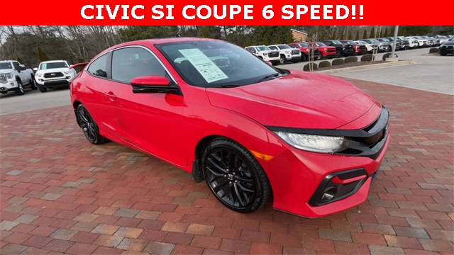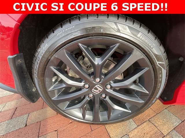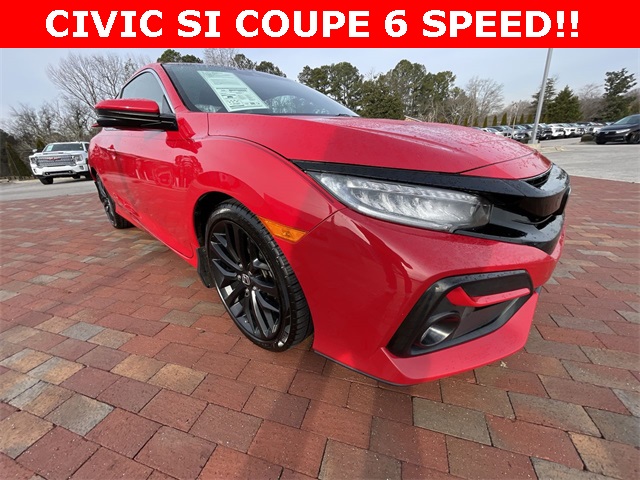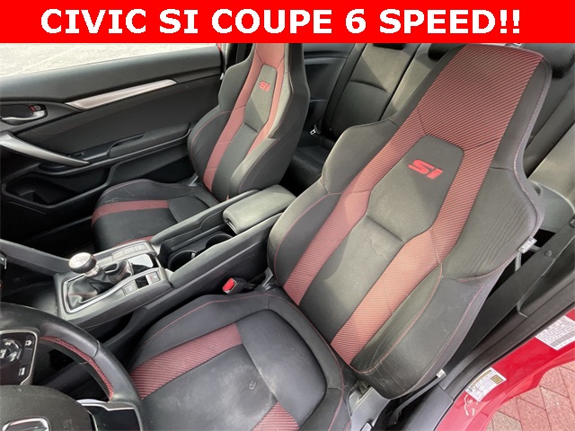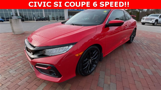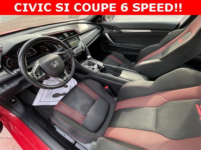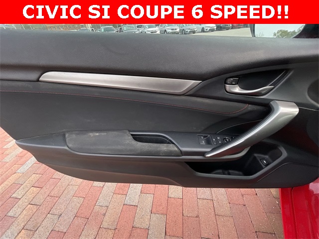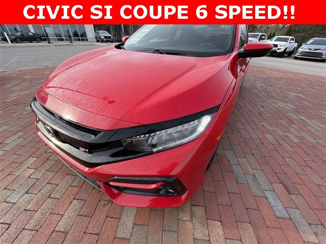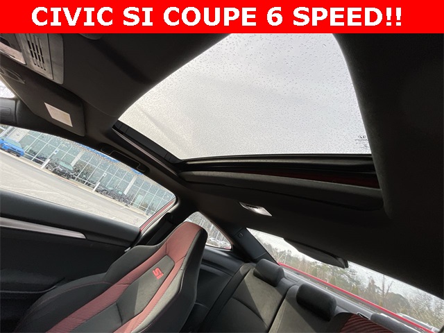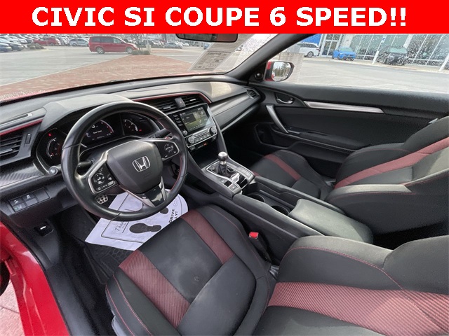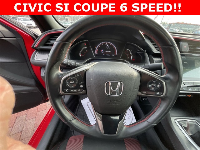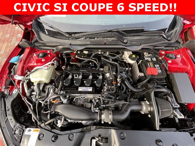 2020 Honda Civic Si Si Rallye Red 2D Coupe 1.5L I4 DOHC 16V 6-Speed Manual FWD This vehicle comes well equipped with 10 Speakers, 4-Wheel Disc Brakes, ABS brakes, Air Conditioning, Alloy wheels, AM/FM radio: SiriusXM, Apple CarPlay/Android Auto, Auto High-beam Headlights, Automatic temperature control, Brake assist, Bumpers: body-color, Cloth Seat Trim, Delay-off headlights, Driver door bin, Driver vanity mirror, Dual front impact airbags, Dual front side impact airbags, Electronic Stability Control, Emergency communication system: HondaLink, Exterior Parking Camera Rear, Forward collision: Collision Mitigation Braking System (CMBS) + FCW mitigation, Four wheel independent suspension, Front anti-roll bar, Front Bucket Seats, Front Center Armrest, Front dual zone A/C, Front fog lights, Front reading lights, Fully automatic headlights, Heated door mirrors, Heated Front Bucket Seats, Heated front seats, Illuminated entry, Lane departure: Lane Keeping Assist System (LKAS) active, Leather Shift Knob, Low tire pressure warning, Occupant sensing airbag, Outside temperature display, Overhead airbag, Panic alarm, Passenger door bin, Passenger vanity mirror, Power door mirrors, Power moonroof, Power steering, Power windows, Radio data system, Radio: 450-Watt Premium Audio System w/10 Speakers, Rear anti-roll bar, Rear window defroster, Remote keyless entry, Security system, Speed control, Speed-sensing steering, Speed-Sensitive Wipers, Split folding rear seat, Spoiler, Steering wheel mounted audio controls, Tachometer, Telescoping steering wheel, Tilt steering wheel, Traction control, Trip computer, Variably intermittent wipers, and Wheels: 18" Matte Black Alloy.
