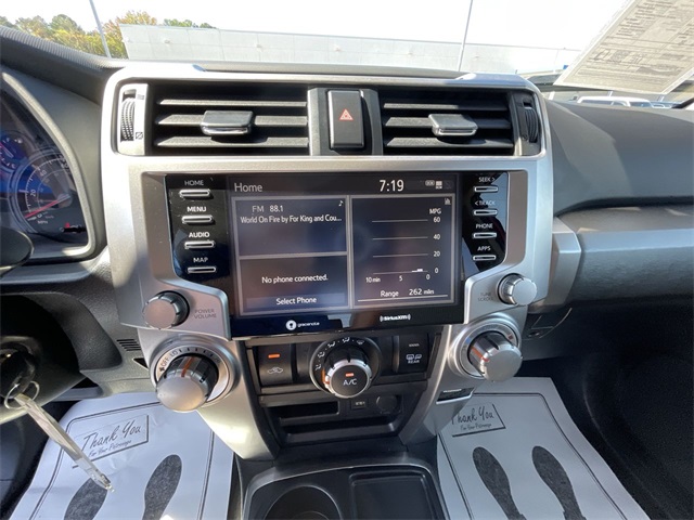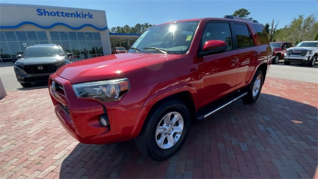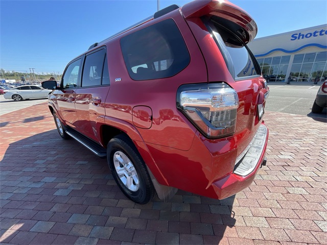 2020 Toyota 4Runner SR5 SR5 Barcelona Red Metallic 4D Sport Utility 4.0L V6 SMPI DOHC 5-Speed Automatic with Overdrive RWD This vehicle comes well equipped with 17" x 7.0" 6-Spoke Alloy Wheels, ABS brakes, Active Cruise Control, Alloy wheels, Electronic Stability Control, Heated door mirrors, Illuminated entry, Low tire pressure warning, Remote keyless entry, and Traction control 17" x 7.0" 6-Spoke Alloy Wheels, ABS brakes, Active Cruise Control, Alloy wheels, Electronic Stability Control, Heated door mirrors, Illuminated entry, Low tire pressure warning, Remote keyless entry, Traction control, 3.727 Axle Ratio, 4-Wheel Disc Brakes, 8 Speakers, Air Conditioning, AM/FM radio: SiriusXM, Anti-whiplash front head restraints, Apple CarPlay/Android Auto, Auto High-beam Headlights, Brake assist, Bumpers: body-color, Driver door bin, Driver vanity mirror, Dual front impact airbags, Dual front side impact airbags, Emergency communication system: Safety Connect with 1-year trial, Exterior Parking Camera Rear, Front anti-roll bar, Front Bucket Seats, Front Center Armrest, Front fog lights, Front reading lights, Front wheel independent suspension, Knee airbag, Leather Shift Knob, Leather steering wheel, Low Fabric Seat Trim, Occupant sensing airbag, Outside temperature display, Overhead airbag, Overhead console, Panic alarm, Passenger door bin, Passenger vanity mirror, Power door mirrors, Power driver seat, Power steering, Power windows, Radio: Audio, Rear anti-roll bar, Rear seat center armrest, Rear window defroster, Rear window wiper, Roof rack: rails only, Security system, Speed control, Speed-sensing steering, Split folding rear seat, Spoiler, Steering wheel mounted audio controls, Tachometer, Telescoping steering wheel, Tilt steering wheel, Trip computer, and Variably intermittent wipers.