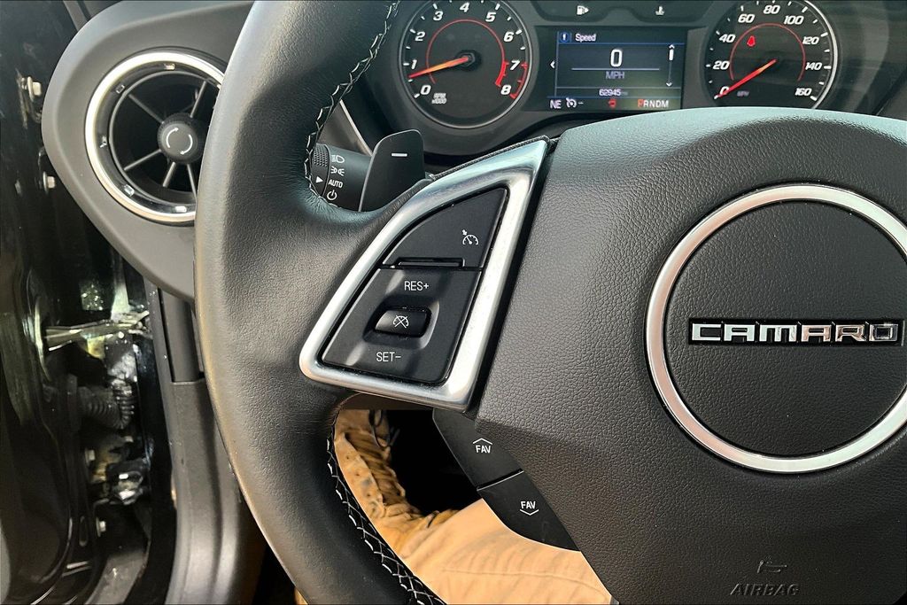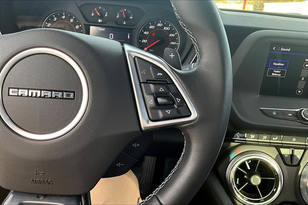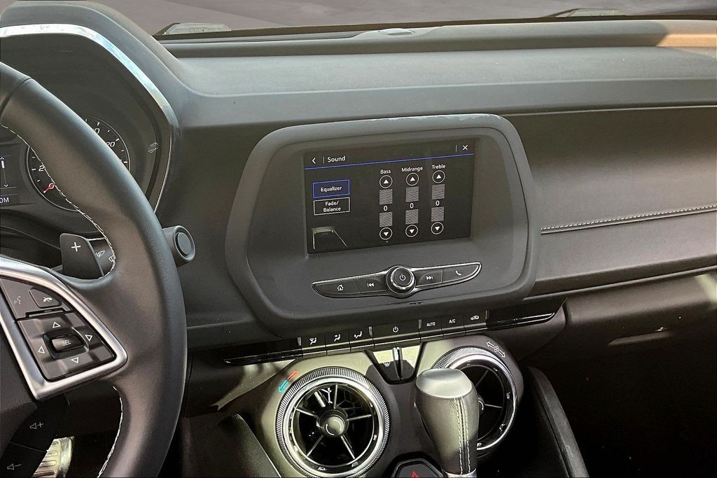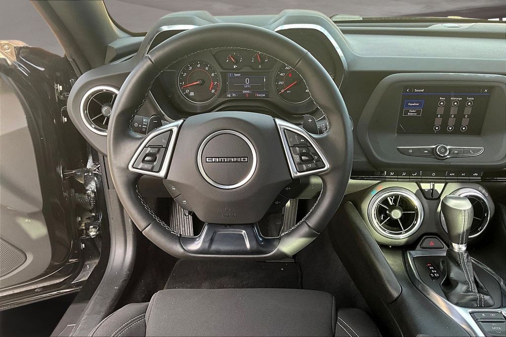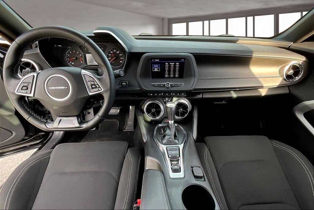Camaro 1LT, 3.6L V6 DI, 10-Speed Automatic, RWD, Black, Jet Black Cloth, 4-Wheel Disc Brakes, 6-Speaker Audio System Feature, 6-Way Power Front Passenger Seat Adjuster, 8-Way Power Driver Seat Adjuster, AM/FM radio: SiriusXM, Apple CarPlay/Android Auto, Automatic temperature control, Bluetooth® For Phone, Cloth Seat Trim, Dark Tint LED Tail Lamps, Decklid-Mounted Lip Spoiler, Exterior Parking Camera Rear, Four wheel independent suspension, Fully automatic headlights, Paddle-Shift Manual Controls, Power door mirrors, Power passenger seat, Preferred Equipment Group 1LT, Premium audio system: Chevrolet Infotainment System, Radio: Chevrolet Infotainment 3 System, Remote keyless entry, Remote Vehicle Starter System, RS Package, SiriusXM Radio, Steering wheel mounted audio controls, Telescoping steering wheel, Tilt steering wheel, Tire Inflation Kit, Wheels: 20" 5-Split Spoke Machined-Face Aluminum.