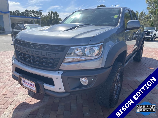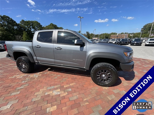 CARFAX One-Owner. 2021 Chevrolet Colorado ZR2 BISON EDITION ZR2 Satin Steel Metallic 4D Crew Cab BISON EDITION V6 8-Speed Automatic 4WD This vehicle comes well equipped with Colorado ZR2 Bison Edition (AEV Embroidered Headrests, AEV Front Bumper, AEV Rear Bumper, Front Contoured Floor Mats, Front Fog Lamps, Rear Contoured Floor Mats, Wheel Moldings, and Wheels: 17" x 8" Dark Graphite Aluminum) and Navigation System Colorado ZR2 Bison Edition (AEV Embroidered Headrests, AEV Front Bumper, AEV Rear Bumper, Front Contoured Floor Mats, Front Fog Lamps, Rear Contoured Floor Mats, Wheel Moldings, and Wheels: 17" x 8" Dark Graphite Aluminum), Heavy-Duty Trailering Package, Preferred Equipment Group 4ZR (Black Rear Bumpers, Black Spray-On Bedliner w/Chevrolet Logo, Driver-Selectable Full-Locking Front Differential, Driver-Selectable Full-Locking Rear Differential, Hitch Guidance, Integrated Trailer Brake Controller, and Tow/Haul Mode), ZR2 Off-Road Package, Navigation System, 2 USB Data Ports w/SD Card Reader, 3.42 Rear Axle Ratio, 4-Way Power Front Passenger Seat Adjuster, 4-Wheel Disc Brakes, 6 Speakers, 6-Speaker Audio System Feature, ABS brakes, Air Conditioning, Alloy wheels, AM/FM radio: SiriusXM, Apple CarPlay/Android Auto, Auto-dimming Rear-View mirror, Automatic temperature control, Bose Premium 7-Speaker Audio System Feature, Cargo Area Lamps (LPO), Compass, Delay-off headlights, Driver 6-Way Power Seat Adjuster, Driver door bin, Driver vanity mirror, Dual front impact airbags, Dual front side impact airbags, Electronic Stability Control, Exterior Parking Camera Rear, Front anti-roll bar, Front Bucket Seats, Front Center Armrest, Front License Plate Kit, Front reading lights, Front wheel independent suspension, Fully automatic headlights, HD Radio, Heated door mirrors, Heated Driver & Front Passenger Seats, Heated front seats, Heated steering wheel, Illuminated entry, Leather-Appointed Seat Trim, Low tire pressure warning, Occupant sensing airbag, Outside temperature display, Overhead airbag, Overhead console, Panic alarm, Passenger door bin, Passenger vanity mirror, Power door mirrors, Power Driver Lumbar Control Seat Adjuster, Power driver seat, Power Passenger Lumbar Control Seat Adjuster, Power passenger seat, Power steering, Power windows, Premium audio system: Chevrolet Infotainment 3 Plus, Radio data system, Radio: Chevrolet Infotainment 3 Plus System, Radio: Chevrolet Infotainment 3 Plus System w/Navi, Rear reading lights, Rear seat center armrest, Rear step bumper, Rear window defroster, Remote keyless entry, Security system, SiriusXM Radio, Speed control, Speed-sensing steering, Steering wheel mounted audio controls, Tachometer, Telescoping steering wheel, Tilt steering wheel, Traction control, Trip computer, Variably intermittent wipers, and Wheels: 17" x 8" Graphite & Oxide Gold Aluminum.