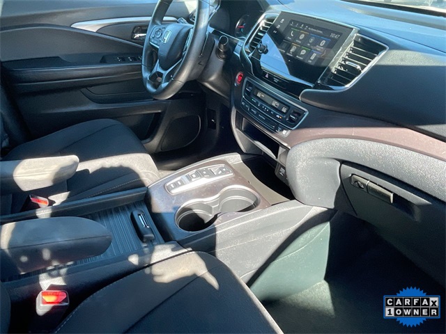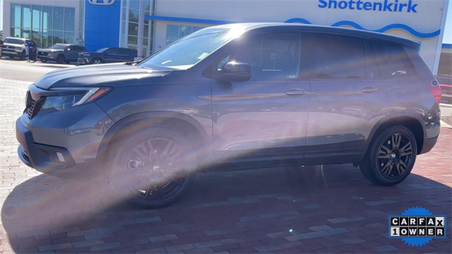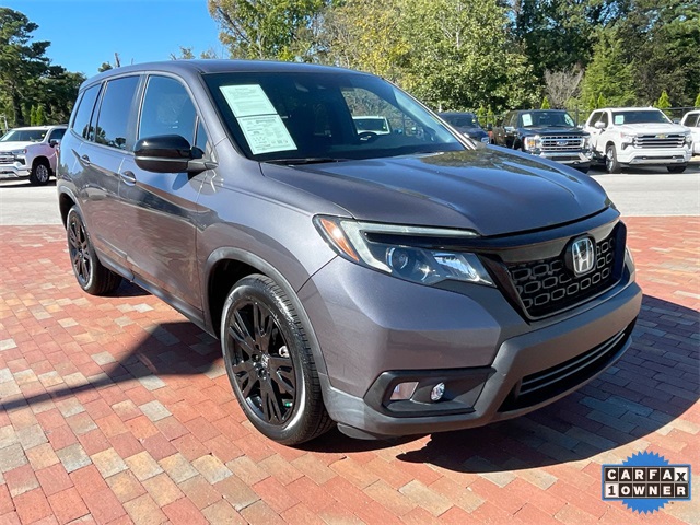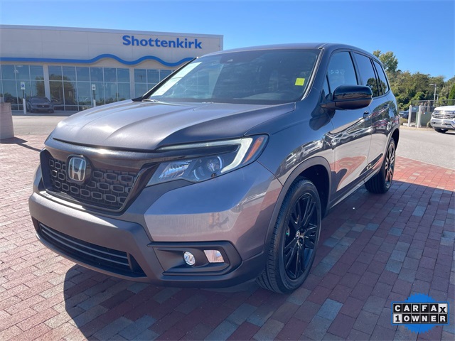 CARFAX One-Owner. 2021 Honda Passport Sport Sport Modern Steel Metallic 4D Sport Utility 3.5L V6 24V SOHC i-VTEC 9-Speed Automatic FWD This vehicle comes well equipped with 4-Wheel Disc Brakes, 4.334 Axle Ratio, 7 Speakers, ABS brakes, Air Conditioning, Alloy wheels, AM/FM radio, Apple CarPlay/Android Auto, Auto High-beam Headlights, Automatic temperature control, Brake assist, Bumpers: body-color, Cloth Seat Trim, Delay-off headlights, Driver door bin, Driver vanity mirror, Driver's Seat Mounted Armrest, Dual front impact airbags, Dual front side impact airbags, Electronic Stability Control, Emergency communication system: HondaLink Assist, Exterior Parking Camera Rear, Forward collision: Collision Mitigation Braking System (CMBS) + FCW mitigation, Four wheel independent suspension, Front anti-roll bar, Front Bucket Seats, Front Center Armrest, Front dual zone A/C, Front fog lights, Front reading lights, Fully automatic headlights, Illuminated entry, Lane departure: Lane Keeping Assist System (LKAS) active, Low tire pressure warning, Occupant sensing airbag, Outside temperature display, Overhead airbag, Overhead console, Panic alarm, Passenger door bin, Passenger seat mounted armrest, Passenger vanity mirror, Power door mirrors, Power steering, Power windows, Radio data system, Radio: 215-Watt Audio System w/7 Speakers, Rear air conditioning, Rear anti-roll bar, Rear reading lights, Rear seat center armrest, Rear window defroster, Rear window wiper, Remote keyless entry, Security system, Speed control, Speed-sensing steering, Split folding rear seat, Spoiler, Steering wheel mounted audio controls, Tachometer, Telescoping steering wheel, Tilt steering wheel, Traction control, Trip computer, Variably intermittent wipers, and Wheels: 20" Split-Spoke Gloss Black Alloy.