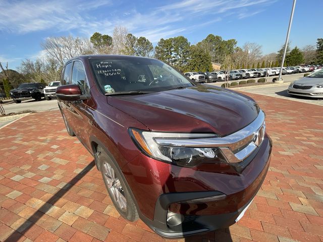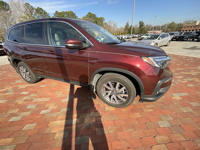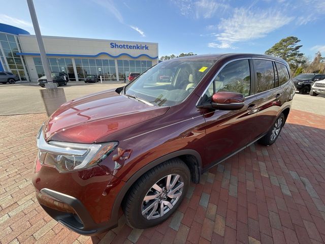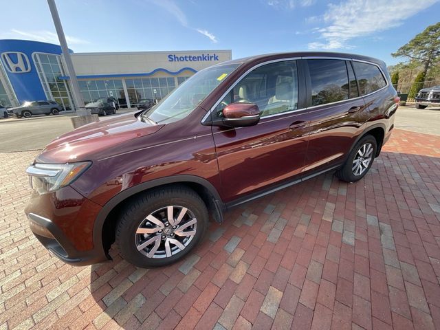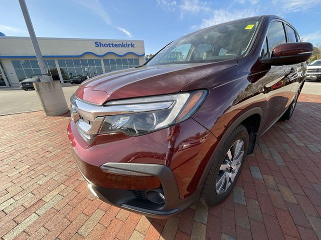 Recent Arrival! CARFAX One-Owner. Certified. 2021 Honda Pilot EX-L EX-L Burgundy 4D Sport Utility 3.5L V6 24V SOHC i-VTEC 9-Speed Automatic AWD This vehicle comes well equipped with 18" Machine-Finished Alloy Wheels, 3rd row seats: split-bench, 4-Wheel Disc Brakes, 4.33 Axle Ratio, 7 Speakers, A/V remote: CabinControl, ABS brakes, Air Conditioning, Alloy wheels, AM/FM radio: SiriusXM, Apple CarPlay/Android Auto, Auto High-beam Headlights, Auto-dimming Rear-View mirror, Automatic temperature control, Blind Spot Information (BSI) System warning, Brake assist, Bumpers: body-color, Delay-off headlights, Driver door bin, Driver vanity mirror, Dual front impact airbags, Dual front side impact airbags, Electronic Stability Control, Emergency communication system: HondaLink Assist, Exterior Parking Camera Rear, Forward collision: Collision Mitigation Braking System (CMBS) + FCW mitigation, Four wheel independent suspension, Front anti-roll bar, Front Bucket Seats, Front Center Armrest, Front dual zone A/C, Front fog lights, Front reading lights, Fully automatic headlights, Garage door transmitter: HomeLink, Heated door mirrors, Heated Front Bucket Seats, Heated front seats, Illuminated entry, Lane departure: Lane Keeping Assist System (LKAS) active, Leather Seat Trim, Low tire pressure warning, Memory seat, Occupant sensing airbag, Outside temperature display, Overhead airbag, Overhead console, Panic alarm, Passenger door bin, Passenger vanity mirror, Power door mirrors, Power driver seat, Power Liftgate, Power moonroof, Power passenger seat, Power steering, Power windows, Radio data system, Radio: 215-Watt Audio System, Rear air conditioning, Rear anti-roll bar, Rear reading lights, Rear seat center armrest, Rear window defroster, Rear window wiper, Reclining 3rd row seat, Remote keyless entry, Security system, Speed control, Speed-sensing steering, Speed-Sensitive Wipers, Split folding rear seat, Spoiler, Steering wheel mounted audio controls, Tachometer, Telescoping steering wheel, Tilt steering wheel, Traction control, Trip computer, Turn signal indicator mirrors, and Variably intermittent wipers.