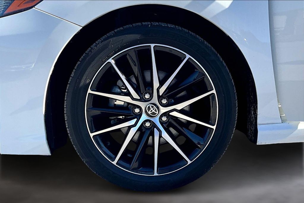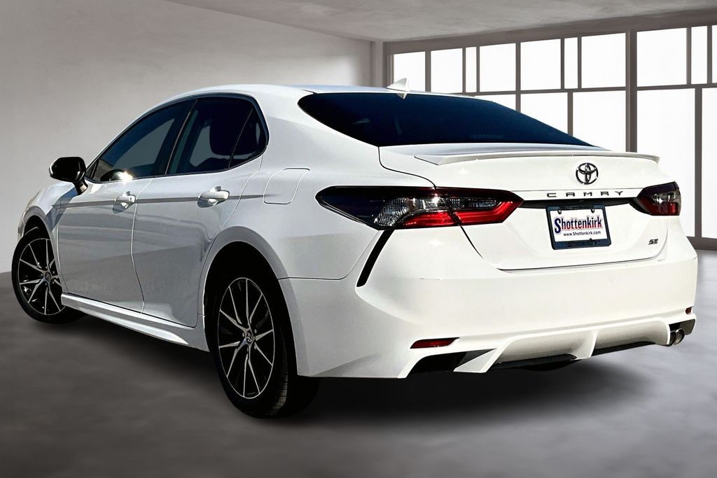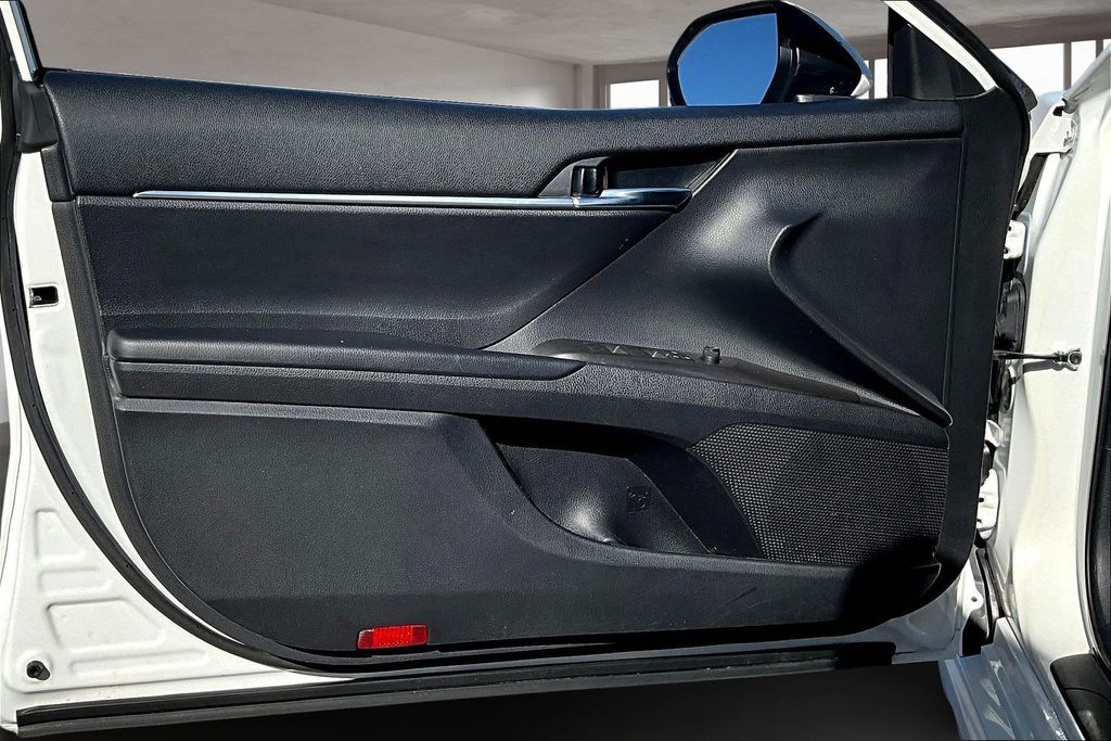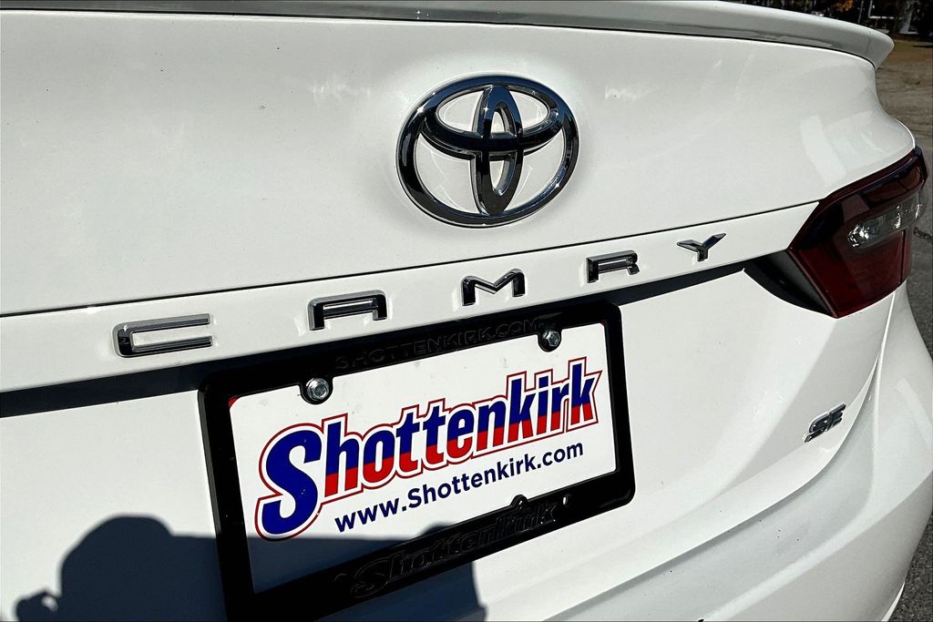 Camry SE, 4D Sedan, 2.5L I4 DOHC 16V, 8-Speed Automatic, FWD, White, Black w/Perforated Leather Seat Trim, ABS brakes, Active Cruise Control, Alloy wheels, AM/FM radio: SiriusXM, Apple CarPlay/Android Auto, Auto High-beam Headlights, Automatic temperature control, Electronic Stability Control, Exterior Parking Camera Rear, Fabric Seat Trim w/Sport SofTex, Four wheel independent suspension, Fully automatic headlights, Illuminated entry, Low tire pressure warning, Power door mirrors, Power driver seat, Radio: AM/FM Audio System, Remote keyless entry, Spoiler, Telescoping steering wheel, Tilt steering wheel, Traction control.