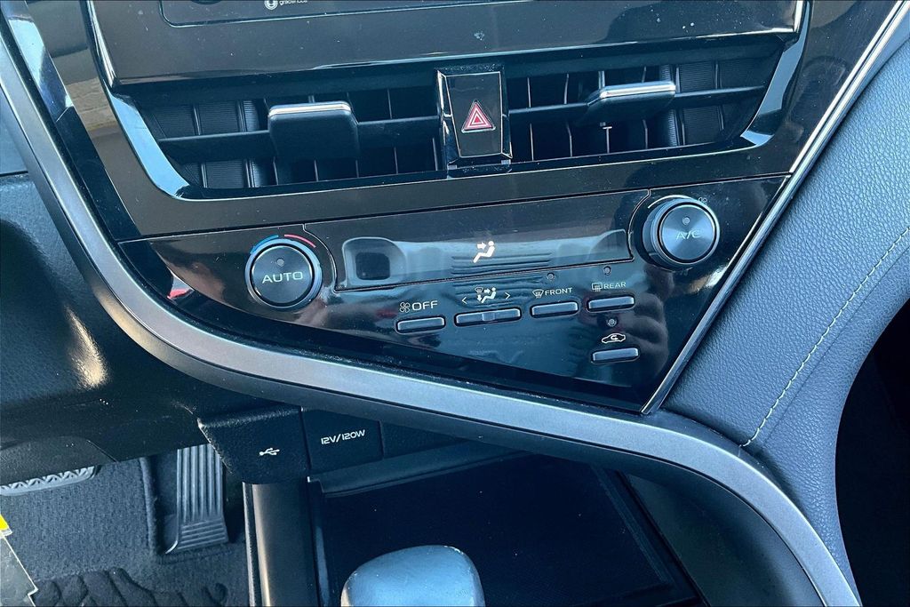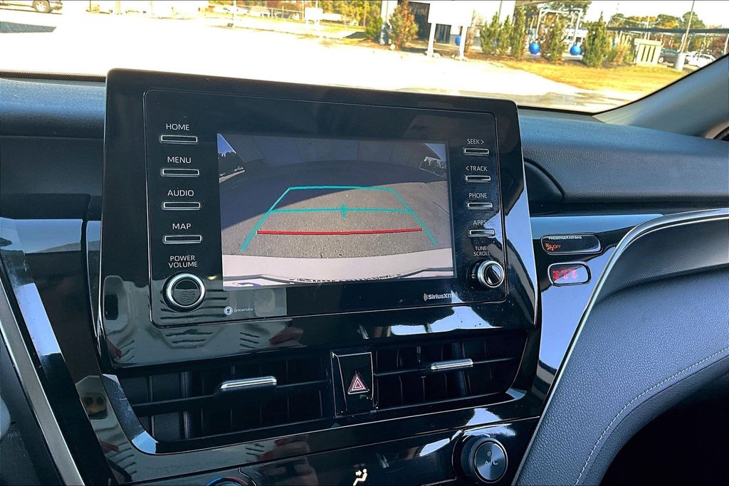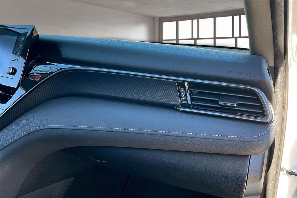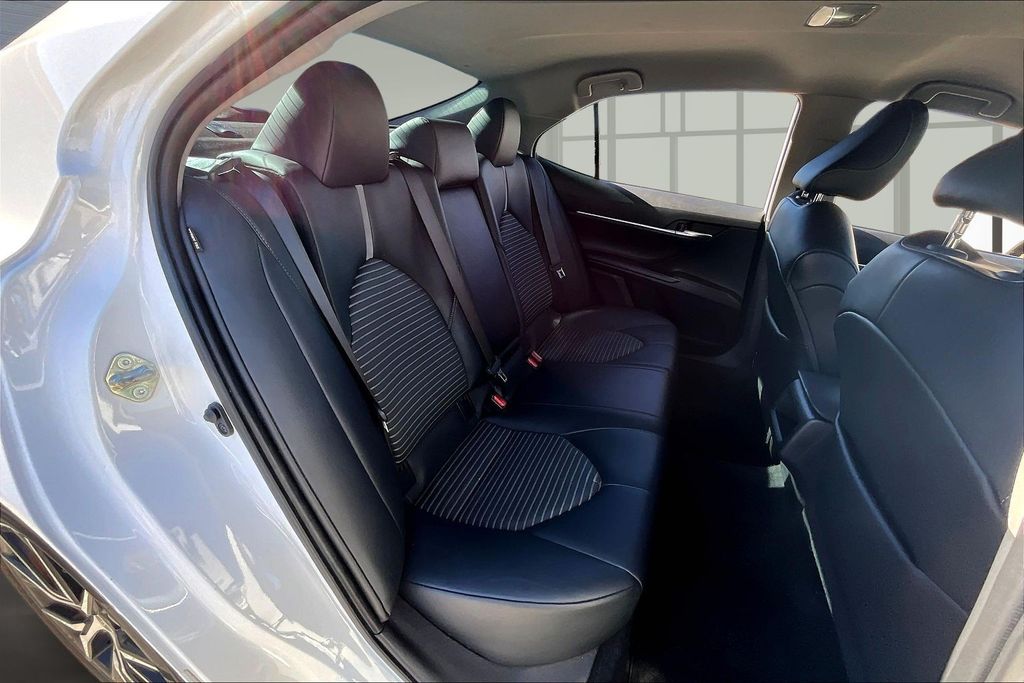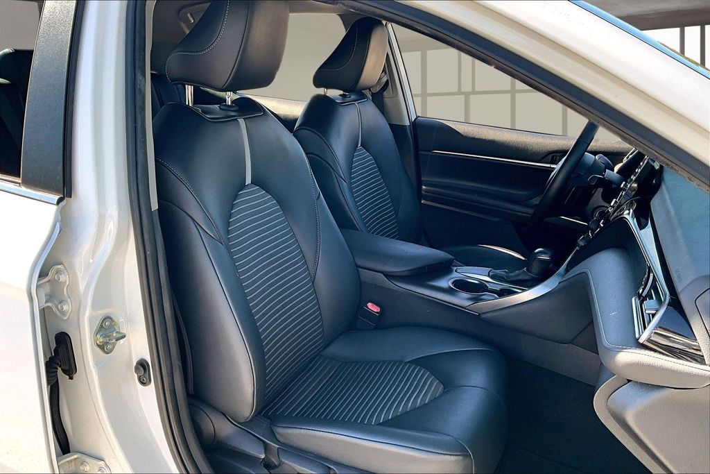 Camry SE, 4D Sedan, 2.5L I4 DOHC 16V, 8-Speed Automatic, FWD, White, Black w/Perforated Leather Seat Trim, ABS brakes, Active Cruise Control, Alloy wheels, AM/FM radio: SiriusXM, Apple CarPlay/Android Auto, Auto High-beam Headlights, Automatic temperature control, Electronic Stability Control, Exterior Parking Camera Rear, Fabric Seat Trim w/Sport SofTex, Four wheel independent suspension, Fully automatic headlights, Illuminated entry, Low tire pressure warning, Power door mirrors, Power driver seat, Radio: AM/FM Audio System, Remote keyless entry, Spoiler, Telescoping steering wheel, Tilt steering wheel, Traction control.