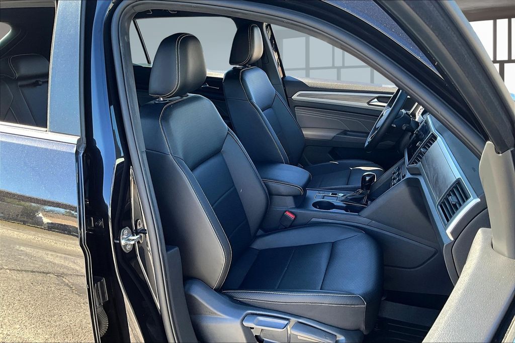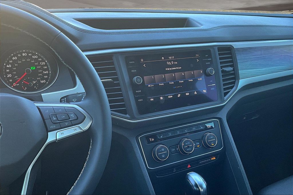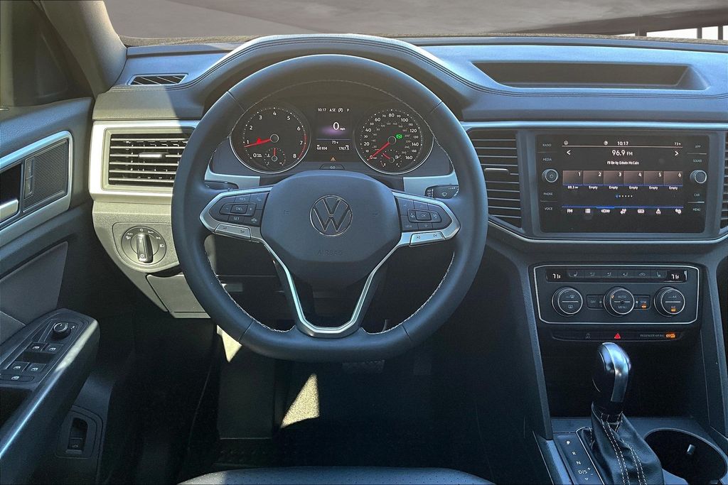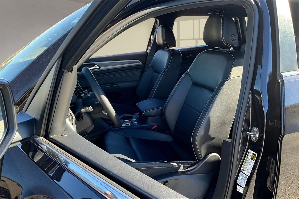 Atlas Cross Sport 2.0T SE, 2.0L TSI, 8-Speed Automatic with Tiptronic, FWD, Deep Black, Titan Black Premium Synthetic, AM/FM radio: SiriusXM with 360L, Auto-dimming Rear-View mirror, Automatic temperature control, Emergency communication system: VW Car-Net services (capabilities require enrollment or subscription), Exterior Parking Camera Rear, Four wheel independent suspension, Frameless Self-Dimming Rearview Mirror, Front Center Armrest, Front dual zone A/C, Front fog lights, Fully automatic headlights, Heated Comfort Front Bucket Seats, Heated door mirrors, Heated front seats, Outside temperature display, Perforated V-Tex Leatherette Seating Surfaces, Power door mirrors, Power driver seat, Power Liftgate, Radio: MIB3 Composition Media w/8" Touchscreen, Rain sensing wipers, Remote keyless entry, Spoiler, Telescoping steering wheel, Turn signal indicator mirrors, Wheels: 18" 5-Spoke 2-Tone Machined Alloy.