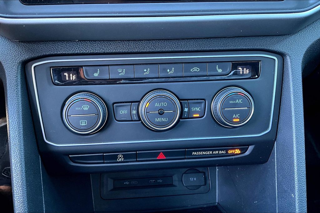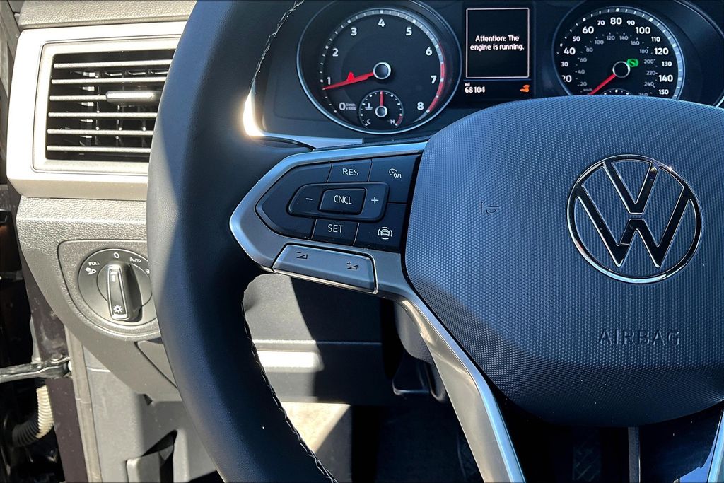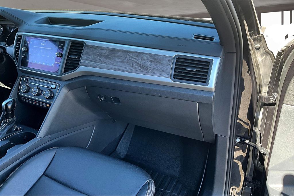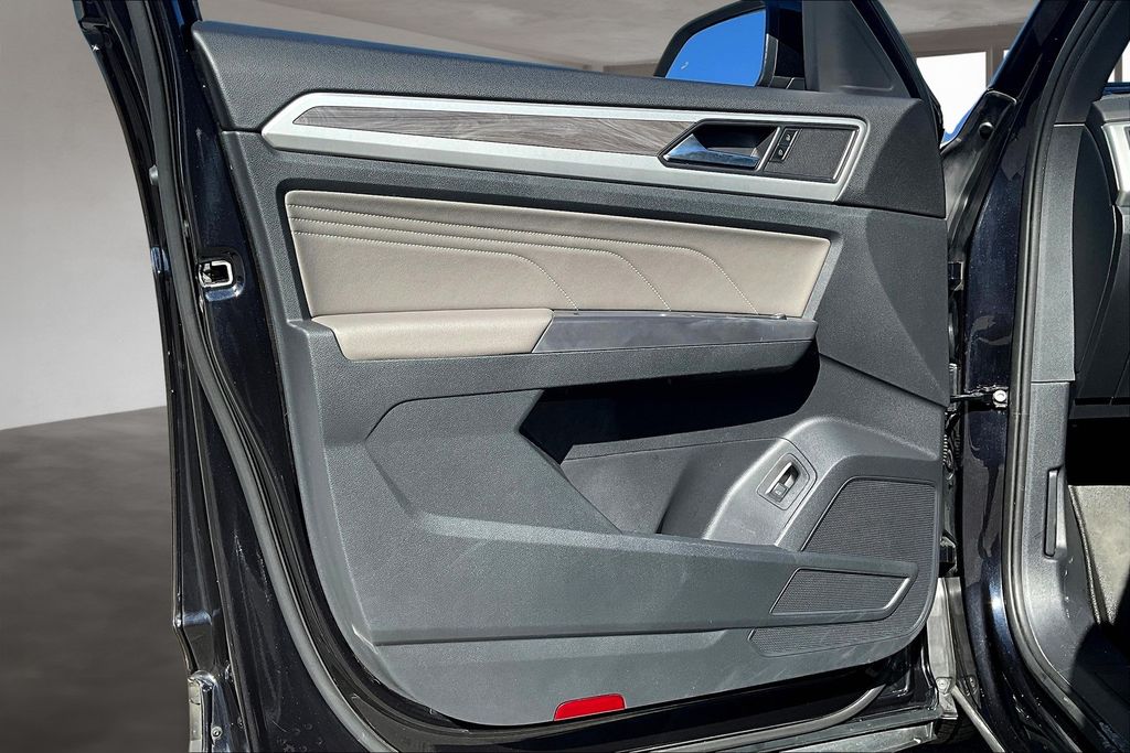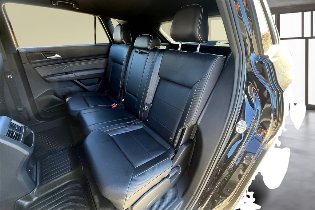 Atlas Cross Sport 2.0T SE, 2.0L TSI, 8-Speed Automatic with Tiptronic, FWD, Deep Black, Titan Black Premium Synthetic, AM/FM radio: SiriusXM with 360L, Auto-dimming Rear-View mirror, Automatic temperature control, Emergency communication system: VW Car-Net services (capabilities require enrollment or subscription), Exterior Parking Camera Rear, Four wheel independent suspension, Frameless Self-Dimming Rearview Mirror, Front Center Armrest, Front dual zone A/C, Front fog lights, Fully automatic headlights, Heated Comfort Front Bucket Seats, Heated door mirrors, Heated front seats, Outside temperature display, Perforated V-Tex Leatherette Seating Surfaces, Power door mirrors, Power driver seat, Power Liftgate, Radio: MIB3 Composition Media w/8" Touchscreen, Rain sensing wipers, Remote keyless entry, Spoiler, Telescoping steering wheel, Turn signal indicator mirrors, Wheels: 18" 5-Spoke 2-Tone Machined Alloy.