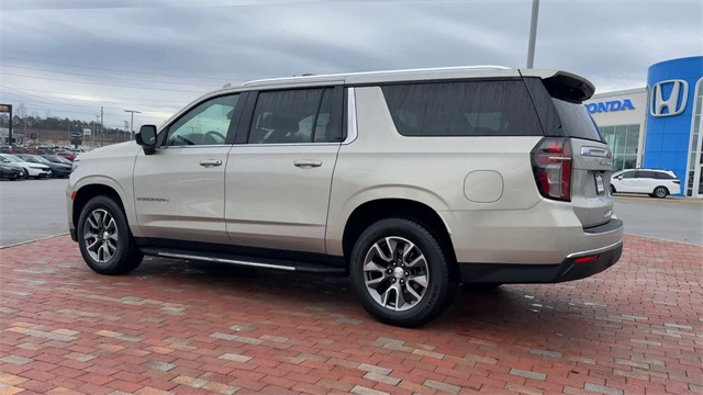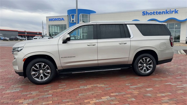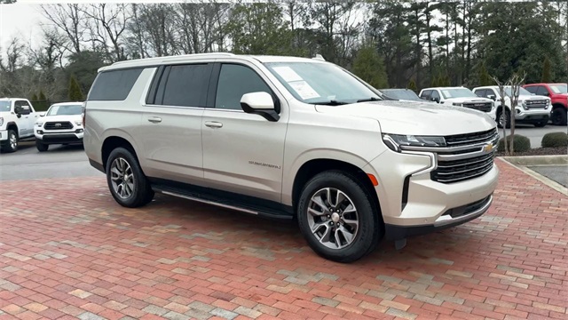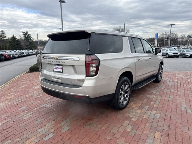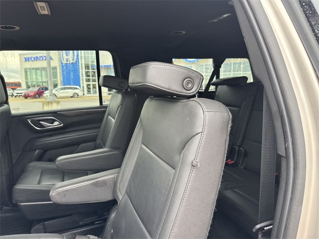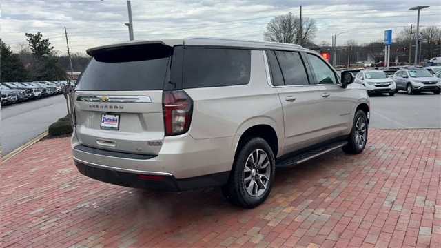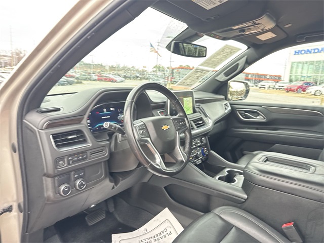CARFAX One-Owner. 2022 Chevrolet Suburban LT LT Empire Beige Metallic 4D Sport Utility EcoTec3 5.3L V8 10-Speed Automatic with Overdrive RWD This vehicle comes well equipped with Preferred Equipment Group 1LT (10-Way Power Driver & Passenger Seat Adjusters, 1st & 2nd Row Color-Keyed Carpeted Floor Mats, Auto-Dimming Inside Rear-View Mirror, Automatic Stop/Start, Bose 9-Speaker Stereo Audio System Feature, Bright Front & Rear Door Sill Plates, Color-Keyed Carpeting Floor Covering, Driver & Front Outboard Passenger Airbags, Enhanced Driver Information Center, Floor Console w/Storage Area, Front & Rear Park Assist, Hands-Free Rear Power Programmable Liftgate, Heated Driver & Front Passenger Seats, Infotainment Display, Leather-Wrapped Steering Wheel, LED Daytime Running Lamps, Memory Settings For Driver, Remote Start, SiriusXM Radio w/360L, Start/Stop System Disable Button, Universal Home Remote, and Wireless Charging), 2nd Row Manual Bucket Seats, 3.23 Rear Axle Ratio, 3rd row seats: split-bench, 4-Wheel Disc Brakes, 9 Speakers, ABS brakes, Air Conditioning, Alloy wheels, AM/FM radio: SiriusXM with 360L, Apple CarPlay/Android Auto, Auto High-beam Headlights, Auto-dimming Rear-View mirror, Automatic temperature control, Brake assist, Bumpers: body-color, Compass, Delay-off headlights, Driver door bin, Driver vanity mirror, Dual front impact airbags, Dual front side impact airbags, Electronic Stability Control, Emergency communication system: OnStar and Chevrolet connected services capable, Four wheel independent suspension, Front anti-roll bar, Front Bucket Seats, Front Center Armrest, Front dual zone A/C, Front reading lights, Fully automatic headlights, Garage door transmitter, Heated door mirrors, Heated front seats, Illuminated entry, Leather steering wheel, Leather-Appointed Seating, Low tire pressure warning, Memory seat, Navigation System, Not Equipped w/Front & Rear Park Assist, Not Equipped w/Steering Column Lock, Occupant sensing airbag, Outside temperature display, Overhead airbag, Overhead console, Panic alarm, Passenger door bin, Passenger vanity mirror, Power door mirrors, Power driver seat, Power Liftgate, Power passenger seat, Power steering, Power windows, Premium audio system: Chevrolet Infotainment 3 Premium, Premium Smooth Ride Suspension, Radio: Chevrolet Infotainment 3 Premium System, Rain sensing wipers, Rear air conditioning, Rear anti-roll bar, Rear reading lights, Rear seat center armrest, Rear window defroster, Rear window wiper, Remote keyless entry, Roof rack: rails only, Security system, Speed control, Speed-sensing steering, Split folding rear seat, Spoiler, Steering wheel mounted audio controls, Tachometer, Telescoping steering wheel, Tilt steering wheel, Traction control, Trip computer, Variably intermittent wipers, Voltmeter, Wheels: 18" x 8.5" Bright Silver Painted Aluminum, and Wheels: 20" x 9" Painted Aluminum.