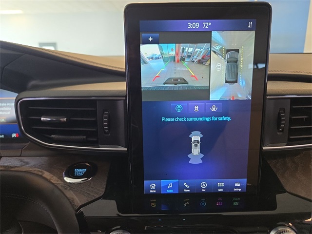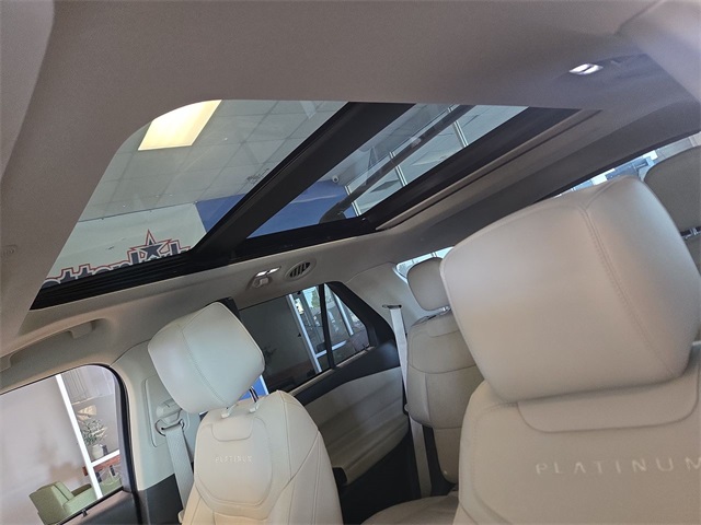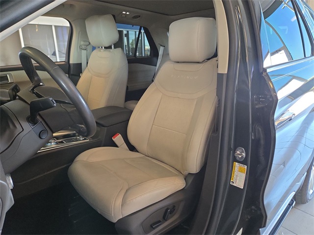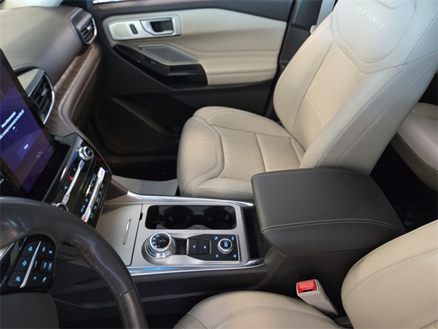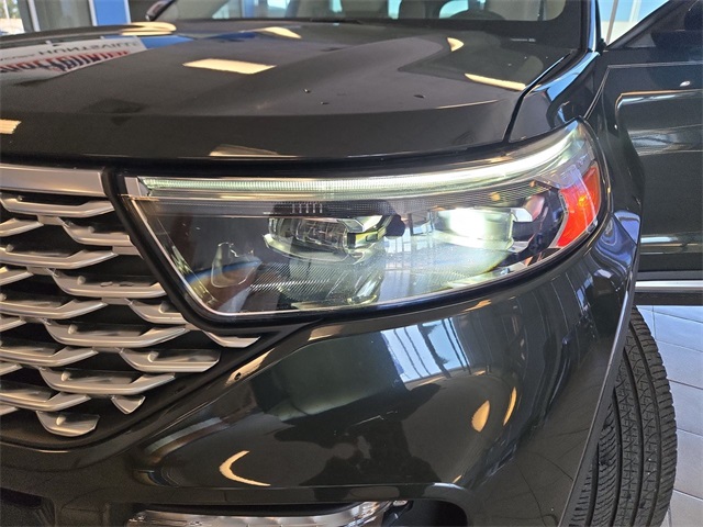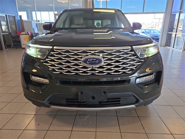 Forged Green Metallic 2022 Ford Explorer Platinum 4WD 10-Speed Automatic 3.0L EcoBoost V6 10.1" LCD Capacitive Portrait Touchscreen, 12 Speakers, 1st Row Heated Seats, 2 Additional Speakers, 3.31 Non-Limited-Slip Rear Axle Ratio, 3rd row seats: bench, 4-Wheel Disc Brakes, ABS brakes, Air Conditioning, Alloy wheels, AM/FM radio: SiriusXM, Auto High-beam Headlights, Auto-dimming door mirrors, Auto-dimming Rear-View mirror, Automatic temperature control, Brake assist, Bumpers: body-color, Class IV Trailer Tow Package, Compass, Delay-off headlights, Driver door bin, Driver vanity mirror, Dual front impact airbags, Dual front side impact airbags, Dual-Headrest Rear Seat Entertainment System, Electronic Stability Control, Emergency communication system: SYNC 3 911 Assist, Equipment Group 601A, Exterior Parking Camera Rear, FordPass Connect, Four wheel independent suspension, Front anti-roll bar, Front Bucket Seats, Front Center Armrest, Front dual zone A/C, Front fog lights, Front reading lights, Fully automatic headlights, Garage door transmitter, Genuine wood dashboard insert, Heated door mirrors, Heated front seats, Heated rear seats, Heated steering wheel, Illuminated entry, Knee airbag, Leather Htd/Ventilated Sport Captain's Chairs, Leather steering wheel, Low tire pressure warning, Memory seat, Navigation System, Occupant sensing airbag, Outside temperature display, Overhead airbag, Overhead console, Panic alarm, Passenger door bin, Passenger vanity mirror, Power door mirrors, Power driver seat, Power Liftgate, Power passenger seat, Power steering, Power windows, Premium Technology Package, Radio data system, Radio: B&O Sound System by Bang & Olufsen, Rain sensing wipers, Rear air conditioning, Rear anti-roll bar, Rear reading lights, Rear window defroster, Rear window wiper, Remote keyless entry, Roof rack: rails only, Security system, Speed control, Speed-sensing steering, Speed-Sensitive Wipers, Split folding rear seat, Spoiler, Steering wheel memory, Steering wheel mounted audio controls, SYNC 3 Communications & Entertainment System, SYNC 3/Apple CarPlay/Android Auto, Tachometer, Telescoping steering wheel, Tilt steering wheel, Traction control, Trip computer, Turn signal indicator mirrors, Twin Panel Moonroof, Variably intermittent wipers, Ventilated front seats, Voice-Activated Touchscreen Navigation System, Wheels: 21" Bright Machined-Face Aluminum.