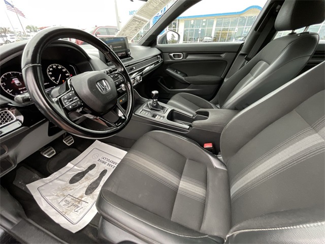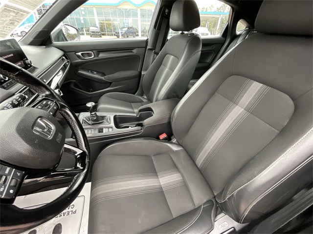 2022 Honda Civic Sport Sport Crystal Black Pearl 4D Hatchback 2.0L I4 DOHC 16V 6-Speed Manual FWD This vehicle comes well equipped with 18" Alloy Wheels, 4-Wheel Disc Brakes, 8 Speakers, ABS brakes, Air Conditioning, Alloy wheels, AM/FM radio, Apple CarPlay/Android Auto, Auto High-beam Headlights, Automatic temperature control, Brake assist, Bumpers: body-color, Delay-off headlights, Driver door bin, Driver vanity mirror, Dual front impact airbags, Dual front side impact airbags, Electronic Stability Control, Emergency communication system: HondaLink, Exterior Parking Camera Rear, Fabric Seating Surfaces, Forward collision: Collision Mitigation Braking System (CMBS) + FCW mitigation, Four wheel independent suspension, Front anti-roll bar, Front Bucket Seats, Front Center Armrest, Front reading lights, Fully automatic headlights, Illuminated entry, Knee airbag, Lane departure: Lane Keeping Assist System (LKAS) active, Leather Shift Knob, Leather steering wheel, Low tire pressure warning, Occupant sensing airbag, Outside temperature display, Overhead airbag, Panic alarm, Passenger door bin, Passenger vanity mirror, Power door mirrors, Power steering, Power windows, Radio data system, Radio: 180-Watt Audio System, Rear anti-roll bar, Rear side impact airbag, Rear window defroster, Rear window wiper, Remote keyless entry, Security system, Speed control, Speed-sensing steering, Split folding rear seat, Steering wheel mounted audio controls, Tachometer, Telescoping steering wheel, Tilt steering wheel, Traction control, Trip computer, and Voltmeter.