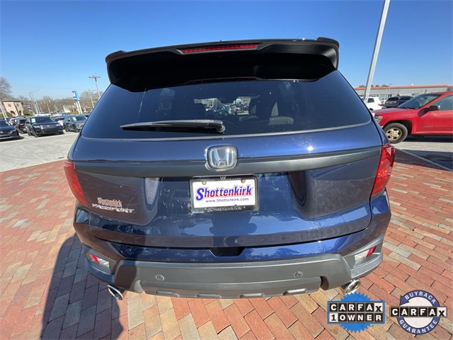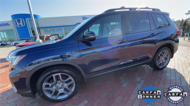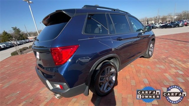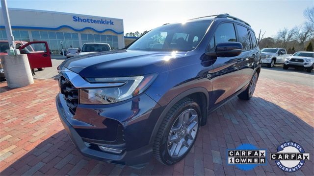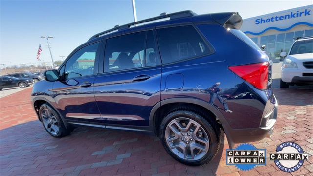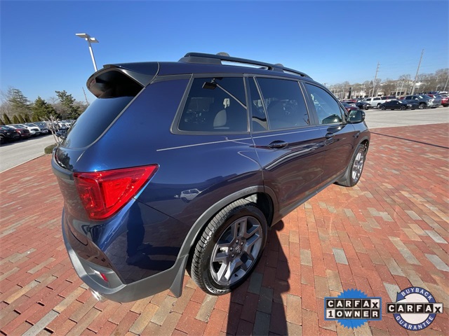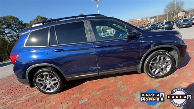 CARFAX One-Owner. Certified. 2022 Honda Passport EX-L EX-L Obsidian Blue Pearl 4D Sport Utility 3.5L V6 24V SOHC i-VTEC 9-Speed Automatic FWD This vehicle comes well equipped with 4-Wheel Disc Brakes, 4.334 Axle Ratio, 7 Speakers, A/V remote: CabinControl, ABS brakes, Air Conditioning, Alloy wheels, AM/FM radio: SiriusXM, Apple CarPlay/Android Auto, Auto High-beam Headlights, Auto-dimming Rear-View mirror, Automatic temperature control, Blind Spot Information (BSI) System warning, Brake assist, Bumpers: body-color, Delay-off headlights, Driver door bin, Driver vanity mirror, Driver's Seat Mounted Armrest, Dual front impact airbags, Dual front side impact airbags, Electronic Stability Control, Emergency communication system: HondaLink Assist, Exterior Parking Camera Rear, Forward collision: Collision Mitigation Braking System (CMBS) + FCW mitigation, Four wheel independent suspension, Front anti-roll bar, Front Bucket Seats, Front Center Armrest, Front dual zone A/C, Front reading lights, Fully automatic headlights, Garage door transmitter: HomeLink, Heated door mirrors, Heated Front Bucket Seats, Heated front seats, Illuminated entry, Lane departure: Lane Keeping Assist System (LKAS) active, Leather-Trimmed Seats, Low tire pressure warning, Memory seat, Occupant sensing airbag, Outside temperature display, Overhead airbag, Overhead console, Panic alarm, Passenger door bin, Passenger seat mounted armrest, Passenger vanity mirror, Power door mirrors, Power driver seat, Power Liftgate, Power moonroof, Power passenger seat, Power steering, Power windows, Radio data system, Radio: 215-Watt Audio System w/7 Speakers, Rear air conditioning, Rear anti-roll bar, Rear reading lights, Rear seat center armrest, Rear window defroster, Rear window wiper, Remote keyless entry, Security system, Speed control, Speed-sensing steering, Split folding rear seat, Spoiler, Steering wheel mounted audio controls, Tachometer, Telescoping steering wheel, Tilt steering wheel, Traction control, Trip computer, Turn signal indicator mirrors, Variably intermittent wipers, and Wheels: 20" Pewter Gray Alloy.