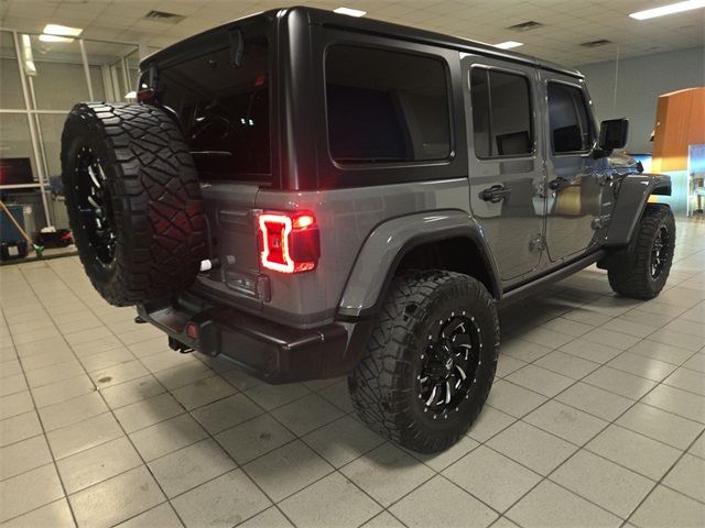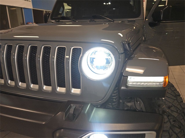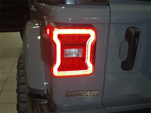 Finished in bold **Sting-Gray Clearcoat**, this Wrangler demands attention with **18 polished wheels with gray spokes**, **Black 3-Piece Hard Top**, **Premium Black Sunrider Soft Top**, and the striking **LED Lighting Group** featuring premium reflector headlamps, LED fog lamps, and LED taillamps. Day or night, this Jeep looks unstoppable.