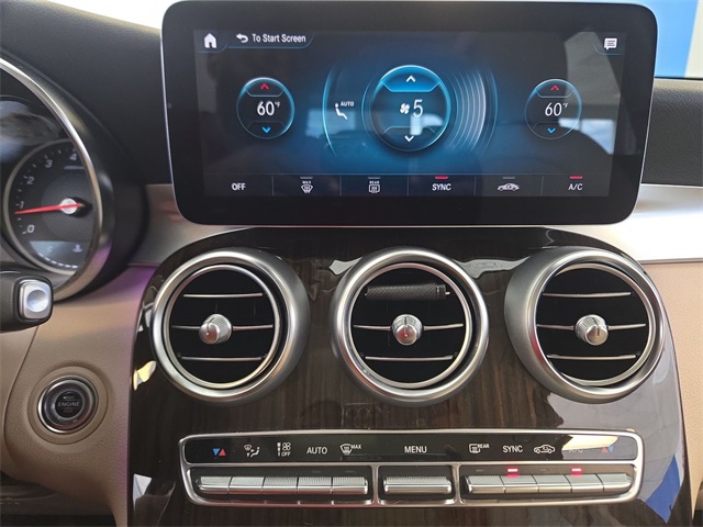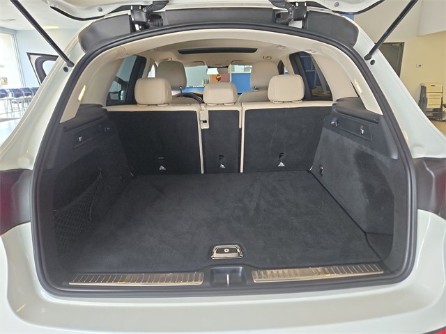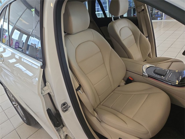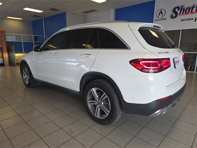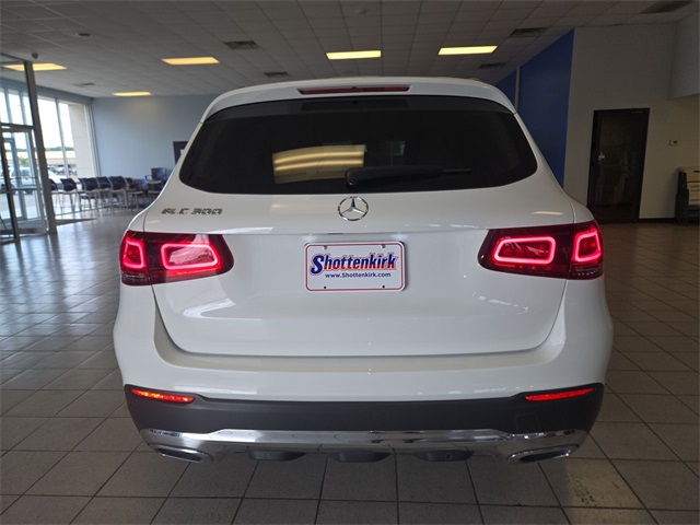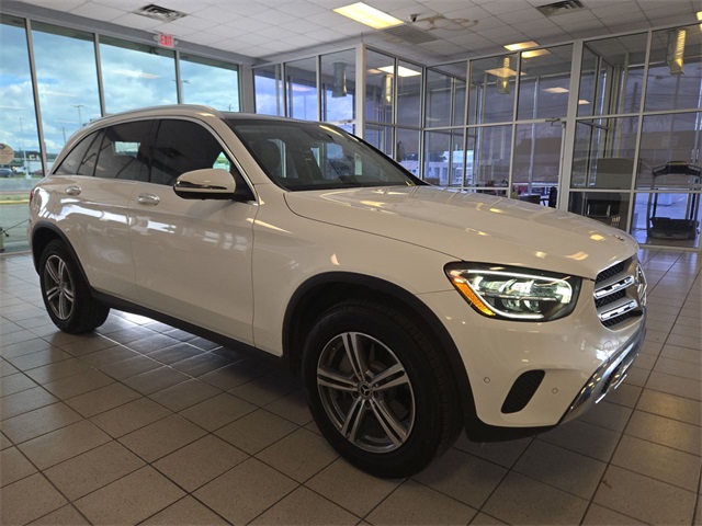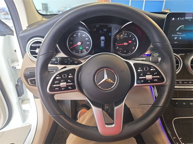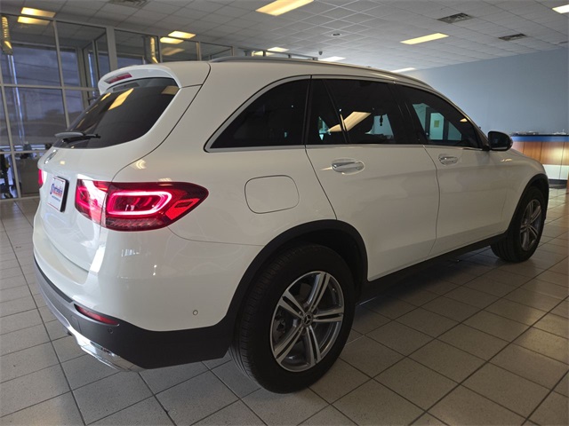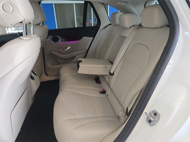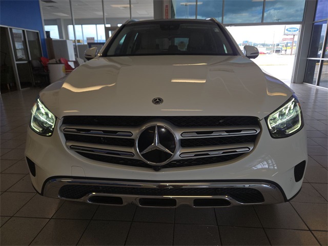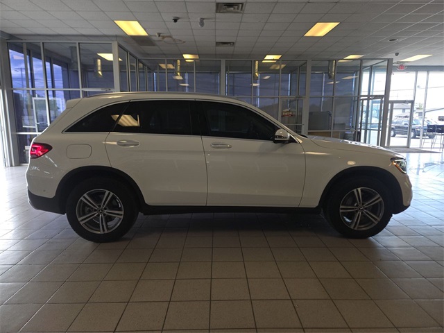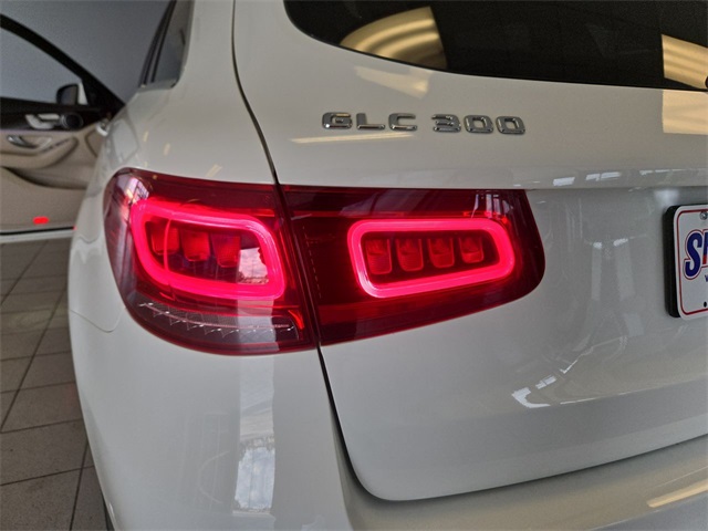 White 2022 Mercedes-Benz GLC GLC 300 RWD 9-Speed Automatic I4 10.25" Center Touchscreen Display, 3.27 Axle Ratio, 4-Way Lumbar Support, 4-Wheel Disc Brakes, 6 Speakers, ABS brakes, Air Conditioning, Alloy wheels, AM/FM radio, Apple CarPlay®/Android Auto®, Auto High-beam Headlights, Auto tilt-away steering wheel, Auto-dimming door mirrors, Auto-dimming Rear-View mirror, Automatic temperature control, Brake assist, Bumpers: body-color, Child-Seat-Sensing Airbag, Delay-off headlights, Driver door bin, Driver vanity mirror, Dual front impact airbags, Dual front side impact airbags, Electronic Stability Control, Emergency communication system: eCall Emergency System, Exterior Parking Camera Rear, Four wheel independent suspension, Front anti-roll bar, Front Bucket Seats, Front Center Armrest, Front dual zone A/C, Front reading lights, Fully automatic headlights, Garage door transmitter: HomeLink, Genuine wood dashboard insert, Heated door mirrors, Heated Front Bucket Seats, Heated front seats, Illuminated entry, Knee airbag, Leather steering wheel, Low tire pressure warning, MB-Tex Upholstery, Memory seat, Occupant sensing airbag, Outside temperature display, Overhead airbag, Overhead console, Panic alarm, Passenger door bin, Passenger vanity mirror, Power door mirrors, Power driver seat, Power Front Seat w/Driver Memory, Power Liftgate, Power passenger seat, Power steering, Power windows, Radio data system, Radio: MBUX Multimedia System, Rain sensing wipers, Rear anti-roll bar, Rear fog lights, Rear reading lights, Rear seat center armrest, Rear window defroster, Rear window wiper, Remote keyless entry, Roof rack: rails only, Security system, Speed control, Speed-sensing steering, Split folding rear seat, Spoiler, Steering wheel memory, Steering wheel mounted audio controls, Tachometer, Telescoping steering wheel, Tilt steering wheel, Traction control, Trip computer, Turn signal indicator mirrors, Variably intermittent wipers, Wheels: 8J x 18 ET 38 Split 5-Spoke.
