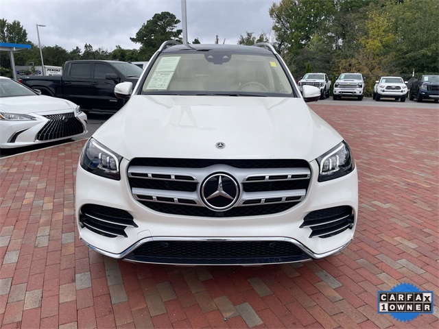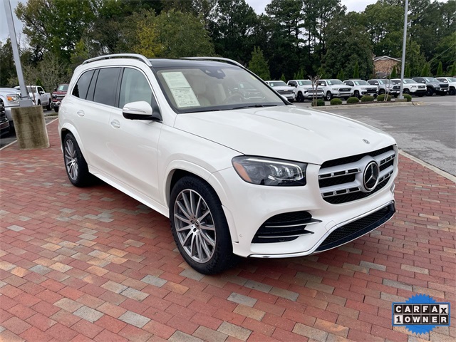 CARFAX One-Owner. 2022 Mercedes-Benz GLS 450 4MATIC® GLS 450 MANUFAKTUR Diamond White Bright 4D Sport Utility 4MATIC® I6 9-Speed Automatic 4MATIC® This vehicle comes well equipped with 13 Speakers, 3.27 Axle Ratio, 3rd row seats: split-bench, 4-Wheel Disc Brakes, 7-Seat Configuration, ABS brakes, Active Brake Assist w/Cross-Traffic Function, Adaptive suspension, Air Conditioning, Alloy wheels, AM/FM radio: SiriusXM, Apple CarPlay®/Android Auto®, Auto High-beam Headlights, Auto tilt-away steering wheel, Auto-dimming door mirrors, Auto-dimming Rear-View mirror, Auto-leveling suspension, Automatic temperature control, Brake assist, Bumpers: body-color, Child-Seat-Sensing Airbag, Compass, Delay-off headlights, Driver door bin, Driver vanity mirror, Dual front impact airbags, Dual front side impact airbags, Electronic Stability Control, Emergency communication system: eCall Emergency System, Four wheel independent suspension, Front anti-roll bar, Front Bucket Seats, Front Center Armrest w/Storage, Front dual zone A/C, Front reading lights, Fully automatic headlights, Garage door transmitter: HomeLink, Genuine wood console insert, Genuine wood dashboard insert, Genuine wood door panel insert, Head restraints memory, Heated and Ventilated Power Front Seats w/Memory, Heated door mirrors, Heated front seats, Illuminated entry, Knee airbag, Low tire pressure warning, MB-Tex Upholstery, Memory seat, Navigation system: MB Navigation, Occupant sensing airbag, Outside temperature display, Overhead airbag, Overhead console, Panic alarm, Passenger door bin, Passenger vanity mirror, Power adjustable front head restraints, Power door mirrors, Power driver seat, Power Liftgate, Power moonroof, Power passenger seat, Power steering, Power windows, Premium audio system: MBUX, Radio: MBUX Multimedia System, Rain sensing wipers, Rear air conditioning, Rear anti-roll bar, Rear dual zone A/C, Rear fog lights, Rear reading lights, Rear seat center armrest, Rear window defroster, Rear window wiper, Remote keyless entry, Roof rack: rails only, Security system, Speed control, Speed-sensing steering, Speed-Sensitive Wipers, Split folding rear seat, Spoiler, Steering wheel memory, Steering wheel mounted audio controls, Tachometer, Telescoping steering wheel, Tilt steering wheel, Traction control, Trip computer, Turn signal indicator mirrors, Variably intermittent wipers, Ventilated front seats, Weather band radio, and Wheels: 20" 8-Spoke.