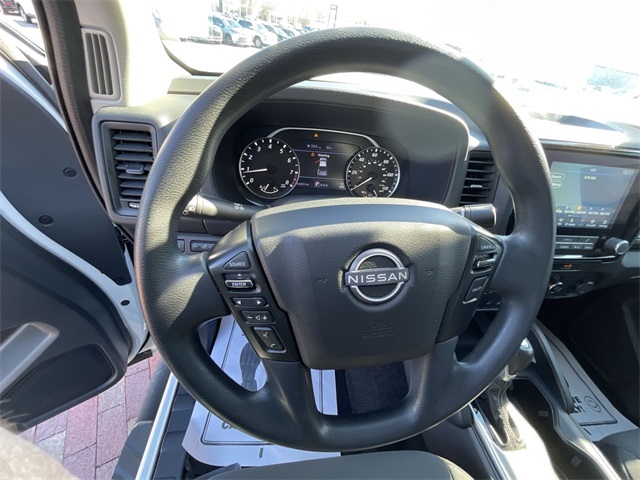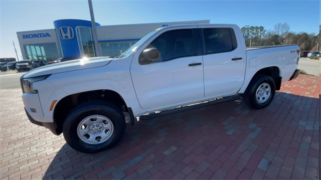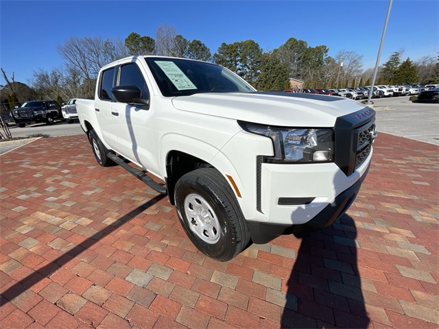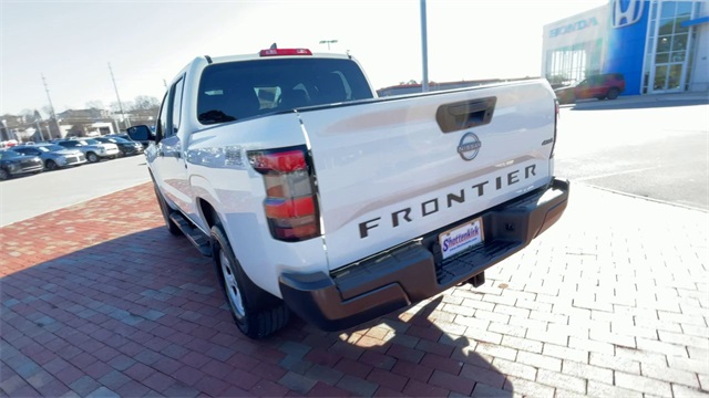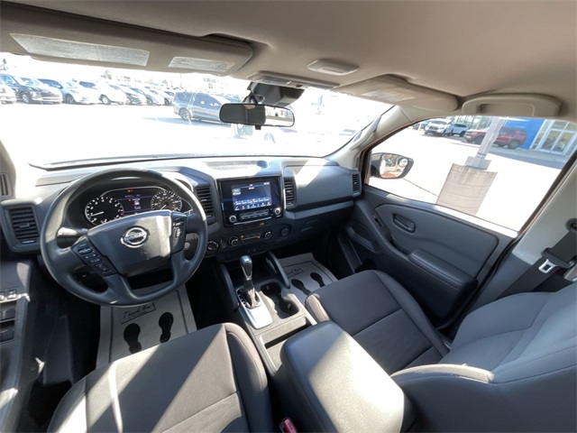 CARFAX One-Owner. 2022 Nissan Frontier S S Glacier White 4D Crew Cab 3.8L DI DOHC 24V V6 9-Speed Automatic 4WD This vehicle comes well equipped with 16" Styled Steel Wheels, 3.692 Axle Ratio, 4-Wheel Disc Brakes, 6 Speakers, ABS brakes, Air Conditioning, AM/FM radio: SiriusXM, Anti-whiplash front head restraints, Apple CarPlay/Android Auto, Auto High-beam Headlights, Brake assist, Bumpers: body-color, Cloth Seat Trim, Delay-off headlights, Driver door bin, Driver vanity mirror, Dual front impact airbags, Dual front side impact airbags, Electronic Stability Control, Floor Mats, Front anti-roll bar, Front Bucket Seats, Front Center Armrest, Front reading lights, Front wheel independent suspension, Fully automatic headlights, Illuminated entry, Knee airbag, Low tire pressure warning, Occupant sensing airbag, Overhead airbag, Panic alarm, Passenger door bin, Passenger vanity mirror, Power steering, Power windows, Radio data system, Radio: SXM/AM/FM/AUX/USB Audio System w/6 Speakers, Rear anti-roll bar, Rear step bumper, Remote keyless entry, Speed control, Speed-sensing steering, Splash Guards, Split folding rear seat, Steering wheel mounted audio controls, Tachometer, Tilt steering wheel, Traction control, Trip computer, and Variably intermittent wipers.