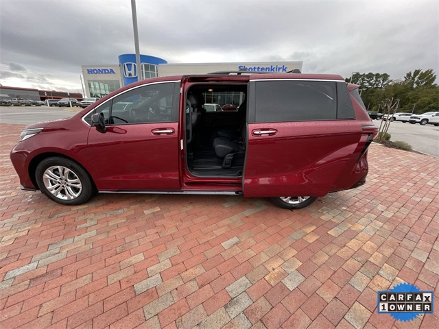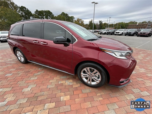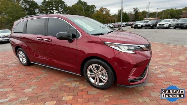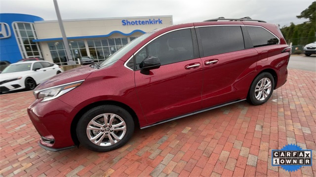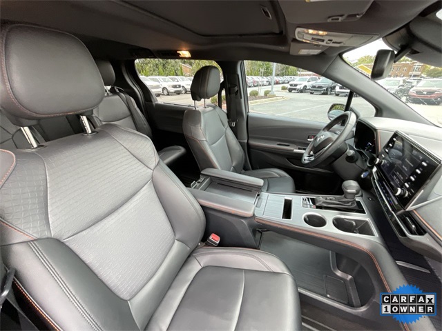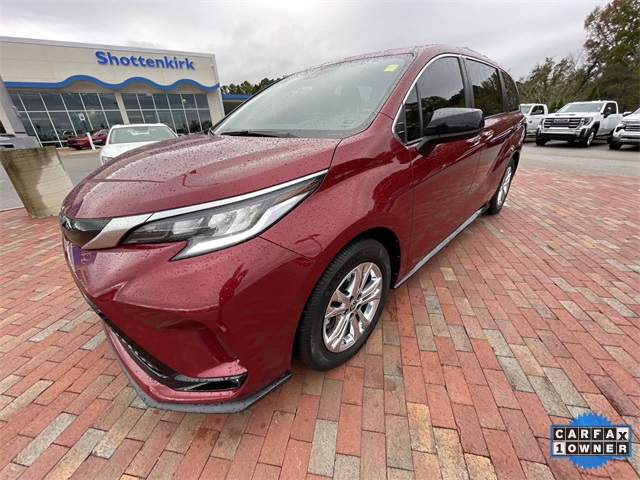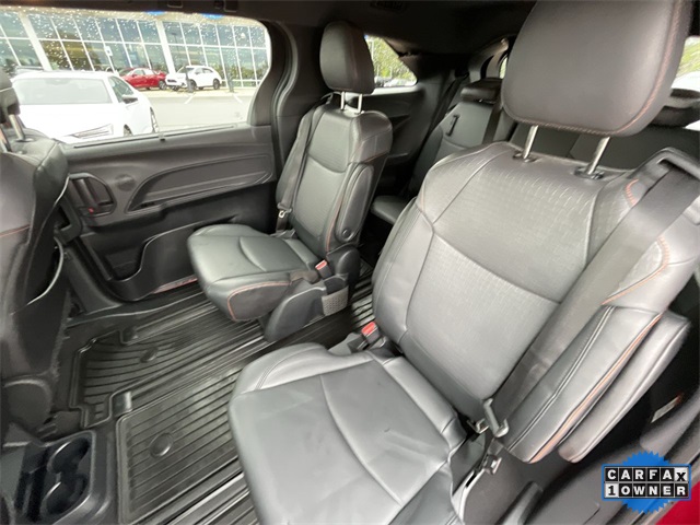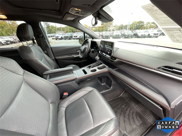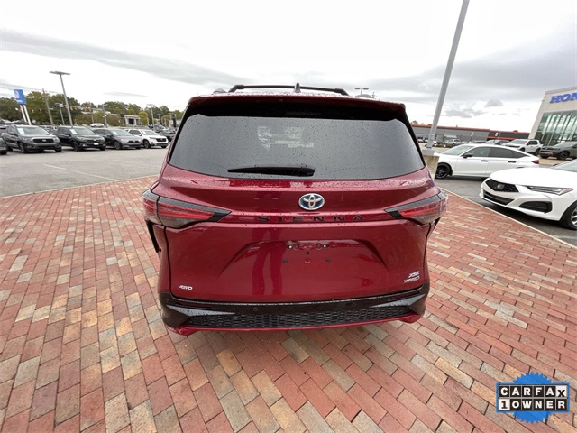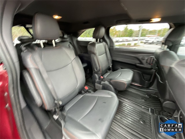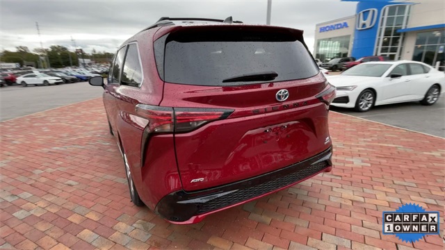 CARFAX One-Owner. 2022 Toyota Sienna XSE 7 Passenger XSE Red 4D Passenger Van 7 Passenger 2.5L I4 CVT AWD This vehicle comes well equipped with 18" Metallic Alloy Wheels, 3rd row seats: split-bench, 4-Wheel Disc Brakes, 8 Speakers, ABS brakes, Air Conditioning, Alloy wheels, AM/FM radio: SiriusXM, Apple CarPlay/Android Auto, Auto High-beam Headlights, Auto-dimming door mirrors, Auto-dimming Rear-View mirror, Automatic temperature control, Axle Ratio: TBA, Brake assist, Bumpers: body-color, Chrome wheels, Compass, Delay-off headlights, Door auto-latch, Driver door bin, Driver vanity mirror, Driver's Seat Mounted Armrest, Dual front impact airbags, Dual front side impact airbags, Electronic Stability Control, Emergency communication system: Safety Connect with 3-year trial, Exterior Parking Camera Rear, Four wheel independent suspension, Front anti-roll bar, Front Bucket Seats, Front dual zone A/C, Front fog lights, Front Heated Bucket Seats, Front reading lights, Fully automatic headlights, Garage door transmitter: HomeLink, Heated door mirrors, Heated front seats, Illuminated entry, Knee airbag, Lane Departure Warning System, Leather Shift Knob, Leather steering wheel, Low tire pressure warning, Navigation System, Occupant sensing airbag, Outside temperature display, Overhead airbag, Overhead console, Panic alarm, Passenger door bin, Passenger seat mounted armrest, Passenger vanity mirror, Power door mirrors, Power driver seat, Power Liftgate, Power moonroof, Power passenger seat, Power steering, Power windows, Radio data system, Radio: Premium Audio w/Navigation, Rear air conditioning, Rear anti-roll bar, Rear dual zone A/C, Rear reading lights, Rear side impact airbag, Rear window defroster, Rear window wiper, Reclining 3rd row seat, Remote keyless entry, SofTex Seat Trim, Speed control, Speed-sensing steering, Split folding rear seat, Spoiler, Steering wheel mounted audio controls, Tachometer, Telescoping steering wheel, Tilt steering wheel, Traction control, Trip computer, Turn signal indicator mirrors, and Variably intermittent wipers.