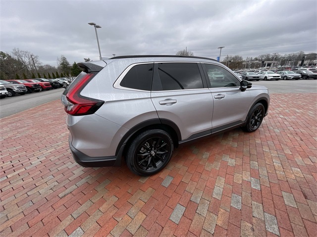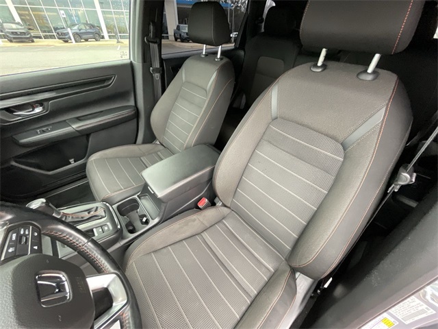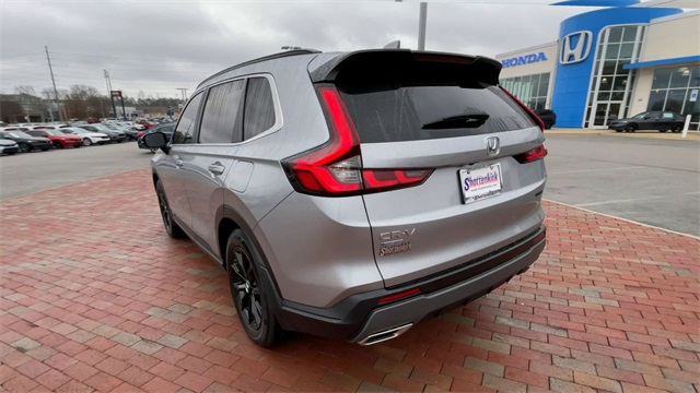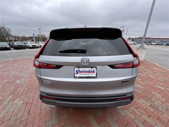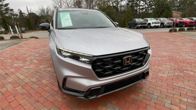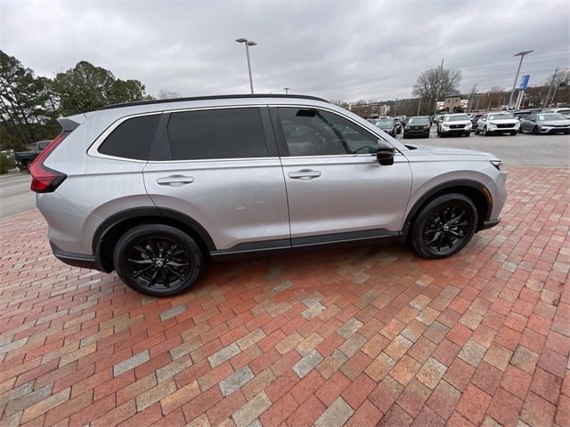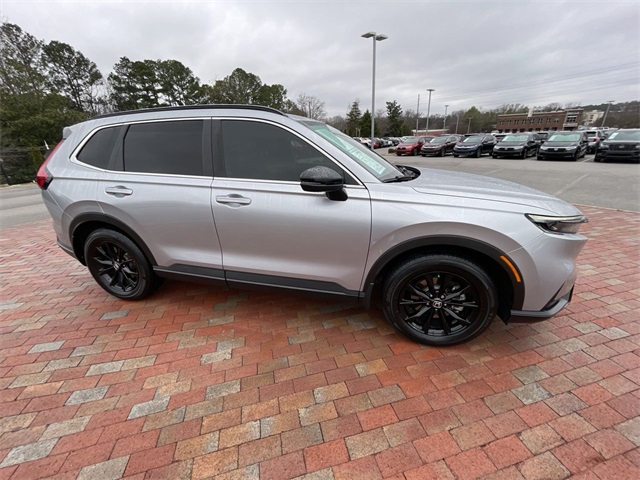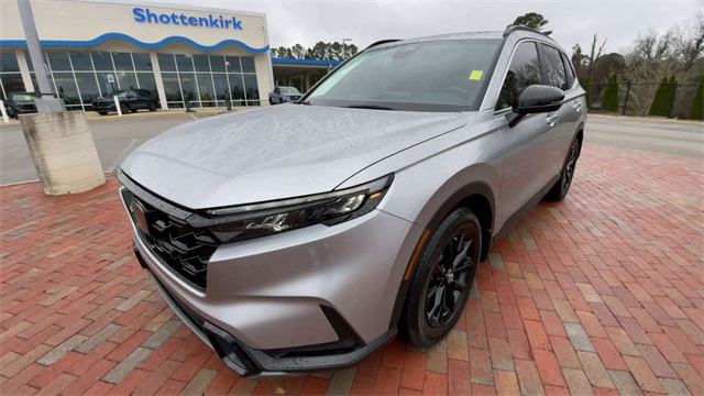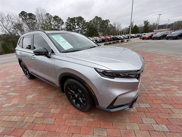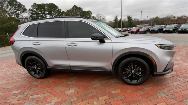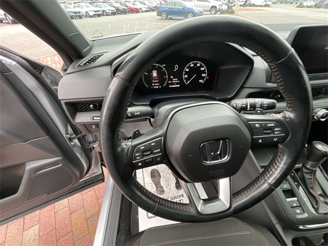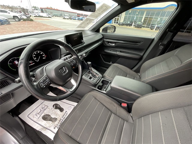 CARFAX One-Owner. Certified. 2023 Honda CR-V Hybrid Sport Sport Lunar Silver Metallic 4D Sport Utility 2.0L I4 DOHC 16V eCVT FWD This vehicle comes well equipped with 4-Wheel Disc Brakes, 4.438 Axle Ratio, 6 Speakers, ABS brakes, Adaptive Cruise Control: Adaptive Cruise Control (ACC) with Low-Speed Follow, Air Conditioning, Alloy wheels, Apple CarPlay/Android Auto, Auto High-beam Headlights, Automatic temperature control, Brake assist, Bumpers: body-color, Cloth Seat Trim, Compass, Delay-off headlights, Driver door bin, Driver vanity mirror, Dual front impact airbags, Dual front side impact airbags, Electronic Stability Control, Exterior Parking Camera Rear, Four wheel independent suspension, Front anti-roll bar, Front Bucket Seats, Front Center Armrest, Front dual zone A/C, Front reading lights, Fully automatic headlights, Heated door mirrors, Heated Front Bucket Seats, Heated front seats, Illuminated entry, Knee airbag, Leather Shift Knob, Leather steering wheel, Low tire pressure warning, Occupant sensing airbag, Outside temperature display, Overhead airbag, Overhead console, Panic alarm, Passenger door bin, Passenger vanity mirror, Power door mirrors, Power driver seat, Power moonroof, Power steering, Power windows, Radio data system, Radio: 240-Watt AM/FM Audio System, Rear anti-roll bar, Rear reading lights, Rear seat center armrest, Rear side impact airbag, Rear window defroster, Rear window wiper, Remote keyless entry, Security system, Speed control, Speed-sensing steering, Speed-Sensitive Wipers, Split folding rear seat, Spoiler, Steering wheel mounted audio controls, Telescoping steering wheel, Tilt steering wheel, Traction control, Trip computer, Turn signal indicator mirrors, Variably intermittent wipers, and Wheels: 18" Berlina Black Alloy.