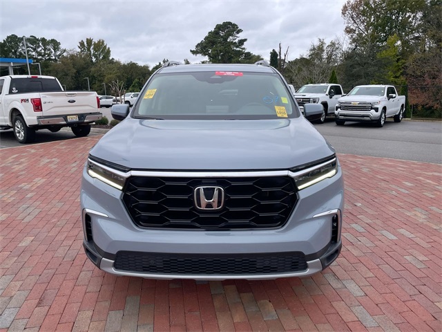 CARFAX One-Owner. Certified. 2023 Honda Pilot Touring Touring Sonic Gray Pearl 4D Sport Utility 3.5L V6 DOHC 24V 10-Speed Automatic FWD This vehicle comes well equipped with 12 Speakers, 3rd row seats: split-bench, 4-Wheel Disc Brakes, ABS brakes, Adaptive Cruise Control: Adaptive Cruise Control (ACC) with Low-Speed Follow, Air Conditioning, Alloy wheels, AM/FM radio: SiriusXM, Apple CarPlay/Android Auto, Auto High-beam Headlights, Auto-dimming Rear-View mirror, Automatic temperature control, Axle Ratio: 4.167, Blind Spot Information (BSI) System warning, Bose Premium Sound System, Brake assist, Bumpers: body-color, Compass, Delay-off headlights, Driver door bin, Driver vanity mirror, Dual front impact airbags, Dual front side impact airbags, Electronic Stability Control, Emergency communication system: HondaLink, Four wheel independent suspension, Front anti-roll bar, Front Bucket Seats, Front Center Armrest, Front dual zone A/C, Front fog lights, Front reading lights, Fully automatic headlights, Garage door transmitter: HomeLink, Heated door mirrors, Heated Front Bucket Seats, Heated front seats, Illuminated entry, Knee airbag, Lane departure: Lane Keeping Assist System (LKAS) active, Leather Seat Trim, Low tire pressure warning, Memory seat, Navigation system: Honda Satellite-Linked Navigation System, Occupant sensing airbag, Outside temperature display, Overhead airbag, Overhead console, Panic alarm, Passenger door bin, Passenger vanity mirror, Power door mirrors, Power driver seat, Power Liftgate, Power moonroof, Power passenger seat, Power steering, Power windows, Radio data system, Rear air conditioning, Rear anti-roll bar, Rear reading lights, Rear seat center armrest, Rear window defroster, Rear window wiper, Reclining 3rd row seat, Remote keyless entry, Security system, Speed control, Speed-sensing steering, Speed-Sensitive Wipers, Split folding rear seat, Spoiler, Steering wheel mounted audio controls, Tachometer, Telescoping steering wheel, Tilt steering wheel, Traction control, Trip computer, Turn signal indicator mirrors, Variably intermittent wipers, and Wheels: 20" Machine Face Shark Gray w/Blk Lug Nuts.