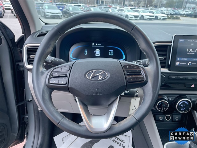 CARFAX One-Owner. 2023 Hyundai Venue SEL SEL Galactic Gray 4D Sport Utility I4 CVT FWD This vehicle comes well equipped with Option Group 01, 4-Wheel Disc Brakes, 6 Speakers, 6.052 Axle Ratio, 6.5J x 17" Alloy Wheels, ABS brakes, Air Conditioning, Alloy wheels, AM/FM radio, Apple CarPlay & Android Auto, Auto High-beam Headlights, Automatic temperature control, Brake assist, Bumpers: body-color, Cargo Tray, Carpeted Floor Mats, Cloth Seat Trim, Cross Rails (Discontinued), Delay-off headlights, Driver door bin, Driver vanity mirror, Dual front impact airbags, Dual front side impact airbags, Electronic Stability Control, Front anti-roll bar, Front Bucket Seats, Front Center Armrest, Front reading lights, Front wheel independent suspension, Fully automatic headlights, Illuminated entry, Leather Shift Knob, Leather steering wheel, Low tire pressure warning, Occupant sensing airbag, Outside temperature display, Overhead airbag, Overhead console, Panic alarm, Passenger door bin, Passenger vanity mirror, Power door mirrors, Power moonroof, Power steering, Power windows, Radio: AM/FM/HD Display Audio, Rear Seat Cup Holder, Rear window defroster, Rear window wiper, Remote keyless entry, Roof rack: rails only, Security system, Speed control, Speed-sensing steering, Split folding rear seat, Spoiler, Steering wheel mounted audio controls, Tachometer, Telescoping steering wheel, Tilt steering wheel, Traction control, Trip computer, and Variably intermittent wipers.