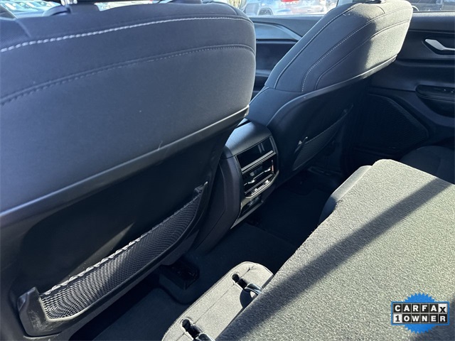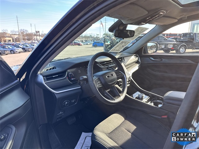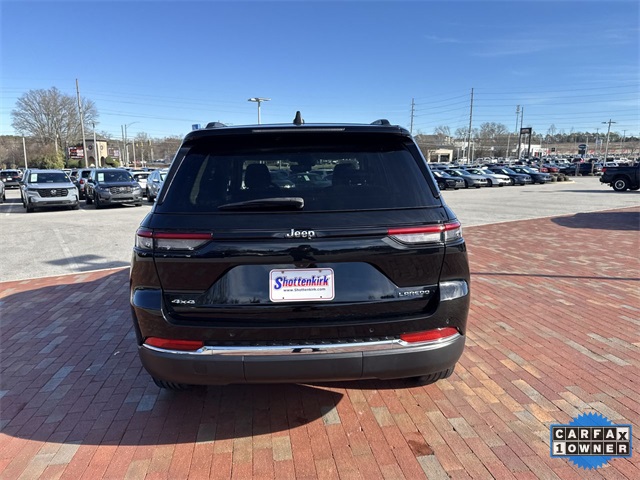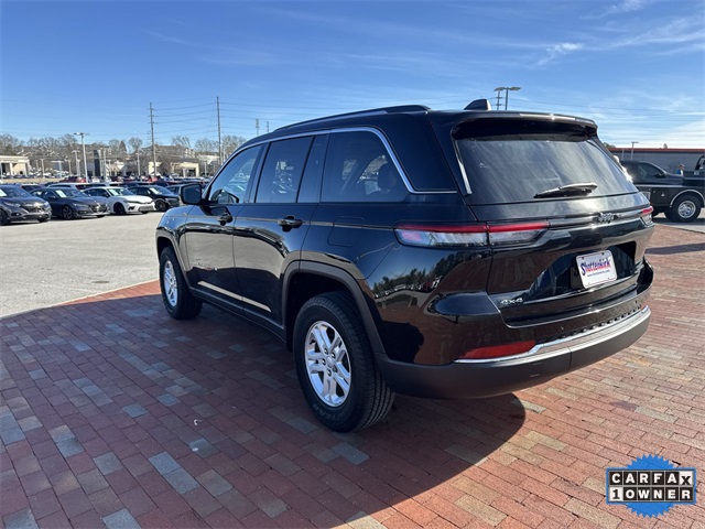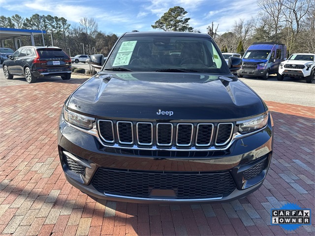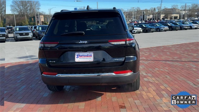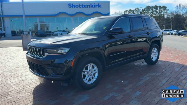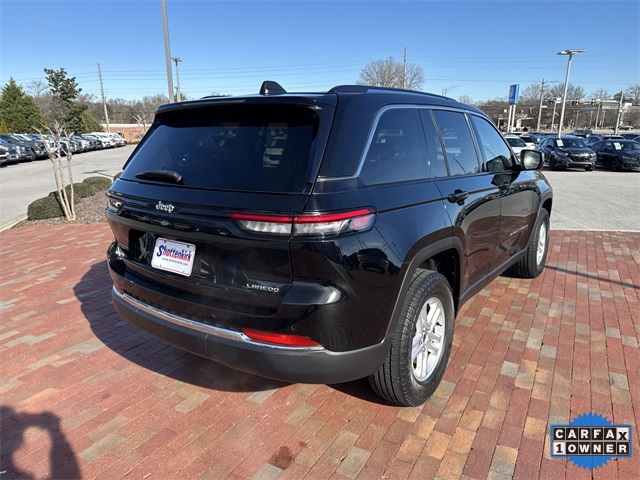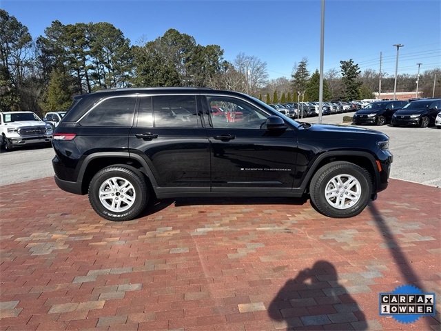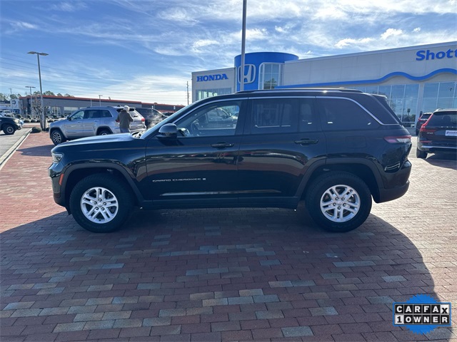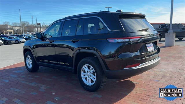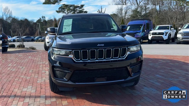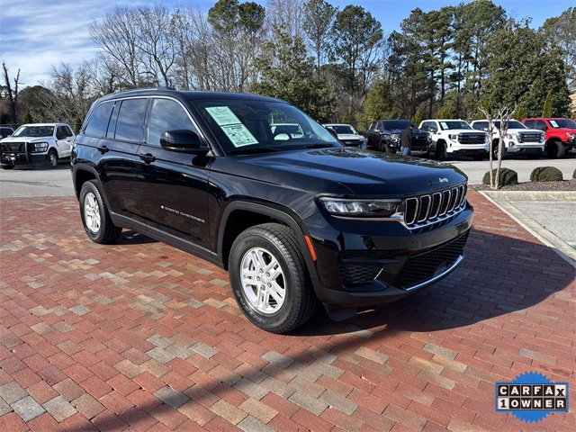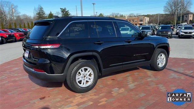 CARFAX One-Owner. 2023 Jeep Grand Cherokee Laredo Laredo Diamond Black Crystal Pearlcoat 4D Sport Utility 3.6L V6 24V VVT 8-Speed Automatic 4WD This vehicle comes well equipped with Luxury Tech Group I (115V Auxiliary Power Outlet, Heated Front Seats, Heated Steering Wheel, Power Liftgate, Rain Sensitive Windshield Wipers, Remote Start System, Secondary Active Grille Shutters, Selectable Tire Fill Alert, and Wireless Charging Pad), Quick Order Package 23A Laredo, Trailer Tow Prep Group (B) (DISC) (180 Amp Alternator, Automatic Headlamp Levelling System, Heavy-Duty Engine Cooling, Rear Load Levelling Suspension, and Trailer Hitch Zoom), 3.45 Rear Axle Ratio, 4-Wheel Disc Brakes, 6 Speakers, ABS brakes, Air Conditioning, Alloy wheels, Anti-whiplash front head restraints, Automatic temperature control, Brake assist, Bumpers: body-color, Cloth Seats, Compass, Delay-off headlights, Driver door bin, Driver vanity mirror, Dual front impact airbags, Dual front side impact airbags, Electronic Stability Control, Emergency communication system, Four wheel independent suspension, Front anti-roll bar, Front Bucket Seats, Front Center Armrest w/Storage, Front dual zone A/C, Front reading lights, Fully automatic headlights, Heated door mirrors, Illuminated entry, Knee airbag, Low tire pressure warning, Molded In Color Black/Gloss Black Roof Rails, Normal Duty Suspension, Occupant sensing airbag, Outside temperature display, Overhead airbag, Overhead console, Panic alarm, ParkView Rear Back-Up Camera, Passenger door bin, Passenger vanity mirror, Power door mirrors, Power driver seat, Power steering, Power Sunroof (DISC), Power windows, Radio data system, Radio: Uconnect 5 w/8.4" Display, Rear anti-roll bar, Rear reading lights, Rear window defroster, Rear window wiper, Remote keyless entry, Security system, Speed control, Speed-Sensitive Wipers, Split folding rear seat, Spoiler, Steering wheel mounted audio controls, Tachometer, Telescoping steering wheel, Tilt steering wheel, Traction control, Trip computer, Variably intermittent wipers, Voltmeter, and Wheels: 17" x 6.5" Fully Painted Aluminum.