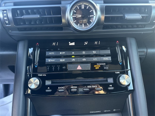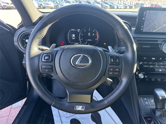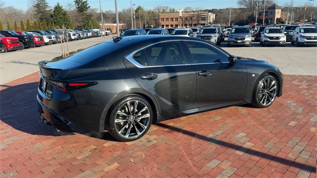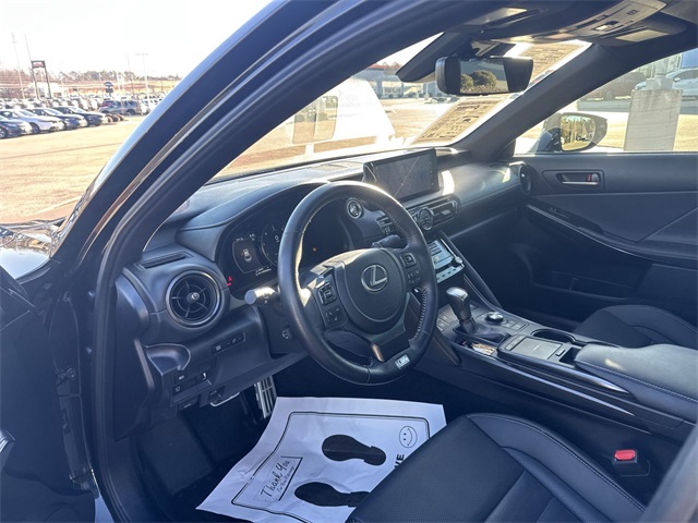2023 Lexus IS 350 F SPORT 350 F SPORT Black 4D Sedan 3.5L V6 DOHC Dual VVT-i 24V 8-Speed Automatic RWD This vehicle comes well equipped with 10 Speakers, 19" Wheels, 4-Wheel Disc Brakes, ABS brakes, Air Conditioning, Alloy wheels, AM/FM radio: SiriusXM, Apple CarPlay/Android Auto, Auto High-beam Headlights, Auto-dimming door mirrors, Auto-dimming Rear-View mirror, Automatic temperature control, Brake assist, Bumpers: body-color, CD player, Compass, Delay-off headlights, Driver door bin, Driver vanity mirror, Dual front impact airbags, Dual front side impact airbags, Electronic Stability Control, Emergency communication system: Safety Connect (3-year trial), Exterior Parking Camera Rear, Four wheel independent suspension, Front anti-roll bar, Front Bucket Seats, Front Center Armrest, Front dual zone A/C, Front fog lights, Front reading lights, Fully automatic headlights, Garage door transmitter: HomeLink, Heated & Ventilated F SPORT Seats, Heated door mirrors, Heated front seats, Heated steering wheel, Illuminated entry, Knee airbag, Leather Shift Knob, Low tire pressure warning, Occupant sensing airbag, Outside temperature display, Overhead airbag, Overhead console, Panic alarm, Passenger door bin, Passenger vanity mirror, Perforated NuLuxe Seat Trim, Power door mirrors, Power driver seat, Power passenger seat, Power steering, Power windows, Radio data system, Radio: Multimedia System w/8" Color Touchscreen, Rain sensing wipers, Rear anti-roll bar, Rear reading lights, Rear seat center armrest, Rear side impact airbag, Rear window defroster, Remote keyless entry, Security system, Speed control, Speed-sensing steering, Speed-Sensitive Wipers, Split folding rear seat, Spoiler, Sport steering wheel, Steering wheel mounted audio controls, Tachometer, Telescoping steering wheel, Tilt steering wheel, Traction control, Trip computer, Turn signal indicator mirrors, Variably intermittent wipers, and Ventilated front seats.