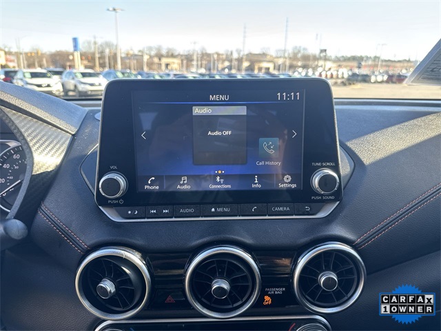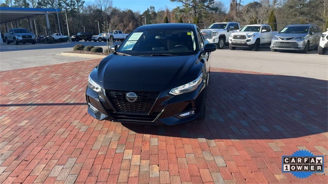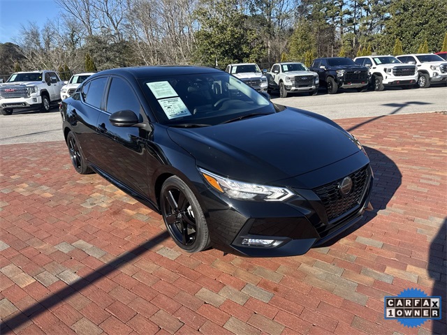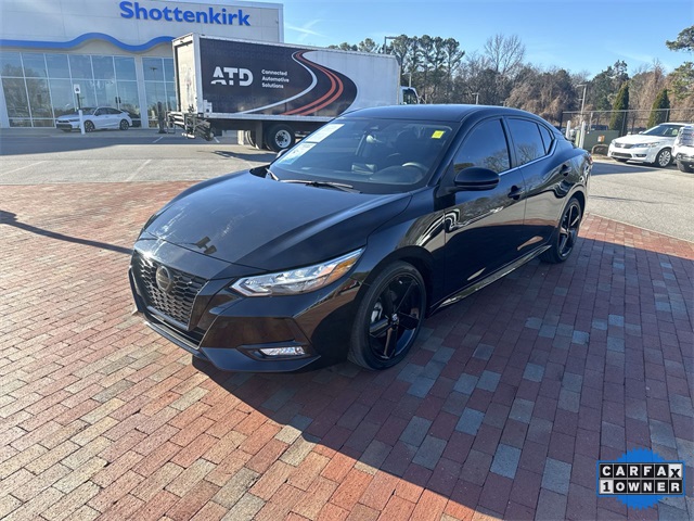 CARFAX One-Owner. 2023 Nissan Sentra SR SR Super Black 4D Sedan 2.0L DOHC CVT with Xtronic FWD This vehicle comes well equipped with Midnight Edition Package (18" Black Alloy Wheels, Black Exterior Badging, Black Painted V-Motion Grille, and Black Rear Spoiler), 18" Alloy Wheels, 4-Wheel Disc Brakes, 6 Speakers, ABS brakes, Air Conditioning, Alloy wheels, AM/FM radio: SiriusXM, Auto High-beam Headlights, Automatic temperature control, Blind Spot Warning, Brake assist, Bumpers: body-color, Clear Rear Bumper Protector, Delay-off headlights, Driver door bin, Driver vanity mirror, Dual front impact airbags, Dual front side impact airbags, Electronic Stability Control, Four wheel independent suspension, Front anti-roll bar, Front Bucket Seats, Front Center Armrest, Front dual zone A/C, Front fog lights, Front reading lights, Fully automatic headlights, Heated door mirrors, Illuminated entry, Knee airbag, Leather Shift Knob, Low tire pressure warning, NissanConnect featuring Apple CarPlay and Android Auto, Occupant sensing airbag, Outside temperature display, Overhead airbag, Overhead console, Panic alarm, Passenger door bin, Passenger vanity mirror, Power door mirrors, Power steering, Power windows, Radio data system, Radio: AM/FM w/RDS/MP3/Aux-In, Rear anti-roll bar, Rear Parking Sensors, Rear seat center armrest, Rear side impact airbag, Rear window defroster, Remote keyless entry, Security system, Speed control, Speed-sensing steering, Split folding rear seat, Spoiler, Sport Cloth Seat Trim, Steering wheel mounted audio controls, Tachometer, Telescoping steering wheel, Tilt steering wheel, Traction control, Trip computer, Turn signal indicator mirrors, and Variably intermittent wipers.
