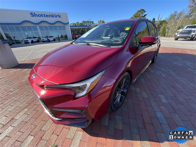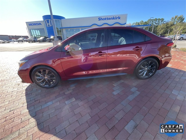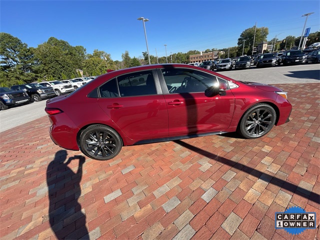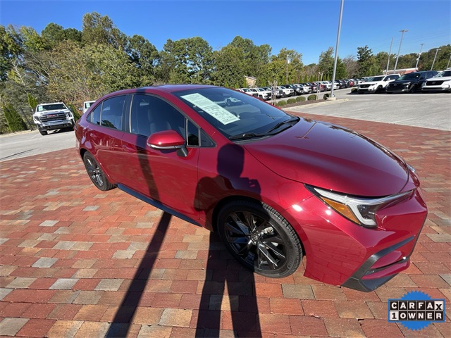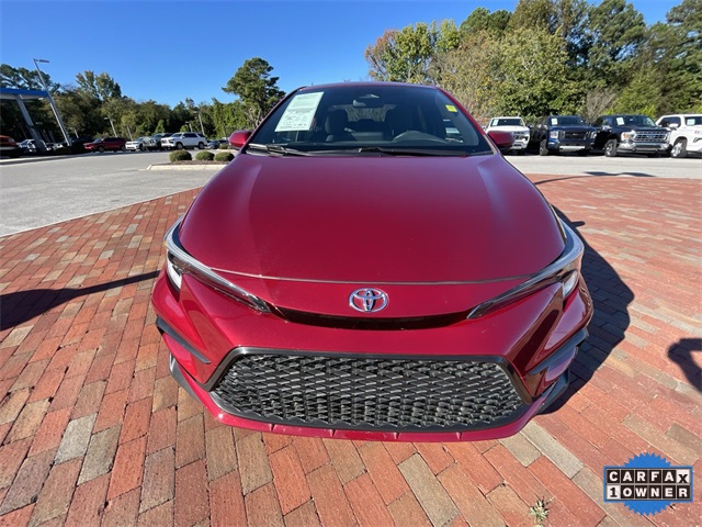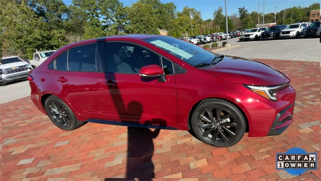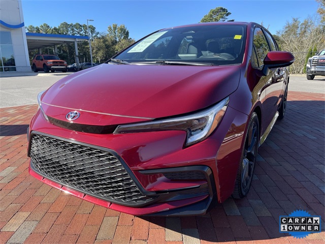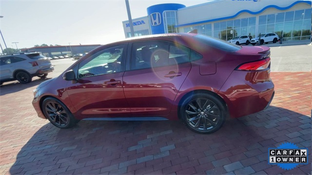 CARFAX One-Owner. 2023 Toyota Corolla SE SE Ruby Flare Pearl 4D Sedan 2.0L I4 DOHC 16V CVT FWD This vehicle comes well equipped with 4-Wheel Disc Brakes, 6 Speakers, ABS brakes, Air Conditioning, Alloy wheels, AM/FM radio: SiriusXM, Auto High-beam Headlights, Automatic temperature control, Brake assist, Bumpers: body-color, Delay-off headlights, Driver door bin, Driver vanity mirror, Dual front impact airbags, Dual front side impact airbags, Electronic Stability Control, Emergency communication system: Safety Connect (up to 10-year trial subscription), Exterior Parking Camera Rear, Four wheel independent suspension, Front anti-roll bar, Front Bucket Seats, Front Center Armrest, Front reading lights, Front Sport Seats, Fully automatic headlights, Heated door mirrors, Illuminated entry, Knee airbag, Leather steering wheel, Low tire pressure warning, Occupant sensing airbag, Outside temperature display, Overhead airbag, Panic alarm, Passenger door bin, Passenger vanity mirror, Power door mirrors, Power steering, Power windows, Premium Seat Trim, Radio data system, Radio: 8" Toyota Audio Multimedia, Rear anti-roll bar, Rear seat center armrest, Rear side impact airbag, Rear window defroster, Remote keyless entry, Speed control, Split folding rear seat, Spoiler, Steering wheel mounted audio controls, Tachometer, Telescoping steering wheel, Tilt steering wheel, Traction control, Trip computer, Turn signal indicator mirrors, Variably intermittent wipers, and Wheels: 18" Alloy w/Graphite Finish.