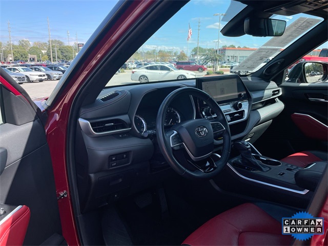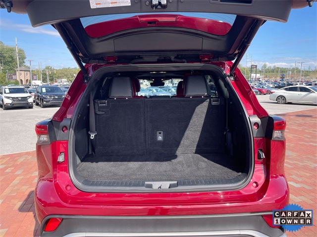 CARFAX One-Owner. 2023 Toyota Highlander L L Ruby Flare Pearl 4D Sport Utility 2.4L I4 PDI Turbocharged DOHC 16V LEV3-SULEV30 265hp 8-Speed Automatic FWD This vehicle comes well equipped with 18" Painted Alloy Wheels, 3.329 Axle Ratio, 3rd row seats: split-bench, 4-Wheel Disc Brakes, 6 Speakers, ABS brakes, Air Conditioning, Alloy wheels, AM/FM radio: SiriusXM, Apple CarPlay/Android Auto, Auto High-beam Headlights, Automatic temperature control, Brake assist, Bumpers: body-color, Delay-off headlights, Driver door bin, Driver vanity mirror, Dual front impact airbags, Dual front side impact airbags, Electronic Stability Control, Emergency communication system: Safety Connect (up to 10-year trial subscription), Engine Immobilizer, Exterior Parking Camera Rear, Fabric Seat Trim, Four wheel independent suspension, Front anti-roll bar, Front Bucket Seats, Front Center Armrest, Front dual zone A/C, Front reading lights, Fully automatic headlights, Heated door mirrors, Illuminated entry, Knee airbag, Low tire pressure warning, Occupant sensing airbag, Outside temperature display, Overhead airbag, Overhead console, Panic alarm, Passenger door bin, Passenger vanity mirror, Power door mirrors, Power driver seat, Power steering, Power windows, Radio: 8" Toyota Audio Multimedia, Rear air conditioning, Rear anti-roll bar, Rear reading lights, Rear seat center armrest, Rear window defroster, Rear window wiper, Reclining 3rd row seat, Remote keyless entry, Speed control, Speed-sensing steering, Split folding rear seat, Spoiler, Steering wheel mounted audio controls, Tachometer, Telescoping steering wheel, Tilt steering wheel, Traction control, Trip computer, Turn signal indicator mirrors, and Variably intermittent wipers.