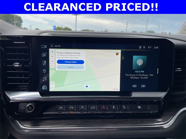 2024 Chevrolet Silverado 1500 LTZ LTZ Iridescent Pearl Tricoat 4D Crew Cab EcoTec3 5.3L V8 10-Speed Automatic 4WD This vehicle comes well equipped with LTZ Convenience Package (2 USB Data Ports, Floor Mounted Center Console, Power Tilt & Telescoping Steering Column, Premium Bose 7-Speaker Sound System, Ventilated Driver & Front Passenger Seats, and Wireless Charging) and Z71 Off-Road Package (Dual Exhaust w/Polished Outlets, Heavy-Duty Air Filter, Hill Descent Control, and Off-Road Suspension) LTZ Convenience Package (2 USB Data Ports, Floor Mounted Center Console, Power Tilt & Telescoping Steering Column, Premium Bose 7-Speaker Sound System, Ventilated Driver & Front Passenger Seats, and Wireless Charging), Z71 Off-Road Package (Dual Exhaust w/Polished Outlets, Heavy-Duty Air Filter, Hill Descent Control, and Off-Road Suspension), High Capacity Suspension Package, LTZ Convenience Package II (2nd Row Heated Outboard Seats, Adaptive Cruise Control, Power Sliding Rear Window w/Rear Defogger, and Universal Home Remote), LTZ Plus Package, Preferred Equipment Group 1LZ (10-Way Power Driver Seat w/Lumbar, 10-Way Power Passenger Seat Adjuster w/Lumbar, 12.3" Multicolor Reconfigurable Digital Display, 120-Volt Bed Mounted Power Outlet, 120-Volt Interior Power Outlet, Auto-Dimming Inside Rear-View Mirror, Auto-Locking Rear Differential, Bluetooth® For Phone, Chevrolet Connected Access Capable, Chrome Mirror Caps, Color-Keyed Carpeting Floor Covering, Deep-Tinted Glass, Driver Memory, Dual Rear USB Ports (Charge Only), Electric Rear-Window Defogger, Electrical Steering Column Lock, Electronic Cruise Control, Front Frame-Mounted Black Recovery Hooks, Front LED Fog Lamps, Front Rain-Sensing Wipers, Front Rubberized Vinyl Floor Mats, Heated Driver & Front Outboard Passenger Seats, Heated Steering Wheel, Hitch Guidance w/Hitch View, In-Vehicle Trailering System App, Integrated Trailer Brake Controller, Keyless Open & Start, LED Cargo Area Lighting, OnStar & Chevrolet Connected Services Capable, Outside Heated Power-Adjustable Mirrors, Power Front Passenger Windows w/Express Up/Down, Power Front Windows w/Driver Express Up/Down, Power Rear Windows w/Express Down, Power Tailgate, Rear Rubberized-Vinyl Floor Mats, Rear Wheelhouse Liners, Remote Vehicle Starter System, SiriusXM w/360L, Standard Tailgate, Steering Wheel Audio Controls, Theft Deterrent System (Unauthorized Entry), Wi-Fi Hot Spot Capable, and Wrapped Steering Wheel), Safety Package (HD Surround Vision, Perimeter Lighting, Rear Cross Traffic Braking, Rear Pedestrian Alert, Safety Alert Seat, Trailer Camera Provisions, Trailer Side Blind Zone Alert, and Ultrasonic Front & Rear Park Assist), Trailering Package (Hitch Guidance), Up-Level Rear Seat w/Storage Package, 170 Amp Alternator, 3.23 Rear Axle Ratio, 4-Wheel Disc Brakes, 7 Speakers, ABS brakes, Air Conditioning, Alloy wheels, AM/FM radio: SiriusXM with 360L, Auto High-beam Headlights, Auto-dimming door mirrors, Auto-dimming Rear-View mirror, Automatic Emergency Braking, Automatic temperature control, Brake assist, Bumpers: chrome, Compass, Delay-off headlights, Driver door bin, Driver vanity mirror, Dual front impact airbags, Dual front side impact airbags, Electronic Stability Control, Electronic Transmission Range Selector Shifter, Following Distance Indicator, Forward Collision Alert, Front anti-roll bar, Front Bucket Seats, Front Center Armrest, Front dual zone A/C, Front fog lights, Front Pedestrian Braking, Front reading lights, Front wheel independent suspension, Fully automatic headlights, Heated door mirrors, Heated front seats, Heated steering wheel, Illuminated entry, IntelliBeam Automatic High Beam On/Off, Lane Keep Assist w/Lane Departure Warning, Low tire pressure warning, Memory seat, Occupant sensing airbag, Outside temperature display, Overhead airbag, Overhead console, Panic alarm, Passenger door bin, Passenger vanity mirror, Perforated Leather-Appointed Front Seat Trim, Power door mirrors, Power driver seat,