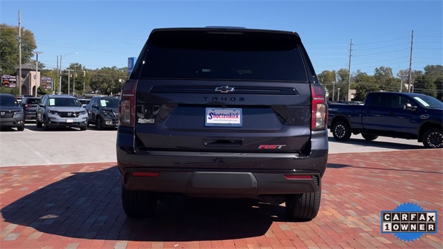 CARFAX One-Owner. 2024 Chevrolet Tahoe RST RST Dark Ash Metallic 4D Sport Utility EcoTec3 5.3L V8 10-Speed Automatic with Overdrive 4WD This vehicle comes well equipped with Advanced Trailering Package (Hitch View w/Pan/Zoom Image Adjustment, Integrated Trailer Brake Controller, and Smart Trailer Integration Indicator), Driver Alert Package (Lane Change Alert w/Side Blind Zone Alert and Rear Cross Traffic Alert), Luxury Package (2nd Row Pwr Release 60/40 Split-Folding Bench Seat, 3rd Row 60/40 Power-Folding Split-Bench Seat, Adaptive Cruise Control, Enhanced Automatic Emergency Braking, HD Surround Vision, Heated 2nd Row Outboard Seats, Heated Steering Wheel, Memory Settings, Outside Heated Power-Adjustable Mirrors, Power Tilt & Telescopic Steering Column, and Rear Pedestrian Alert), Max Trailering Package (2-Speed Active Electronic AutoTrac Transfer Case and Extra Capacity Cooling System), Preferred Equipment Group 1SP (1st & 2nd Row Color-Keyed Carpeted Floor Mats, Auto-Dimming Inside Rear-View Mirror, Bose 9-Speaker Stereo Audio System Feature, Bright Front & Rear Door Sill Plates, Color-Keyed Carpeting Floor Covering, Driver & Front Outboard Passenger Airbags, Enhanced Driver Information Center, Floor Console w/Storage Area, Hands-Free Rear Power Programmable Liftgate, LED Daytime Running Lamps, Memory Settings for Driver, Remote Start, SiriusXM w/360L, Universal Home Remote, Wireless Charging, and Wrapped Steering Wheel), 10-Way Power Driver & Passenger Seat Adjusters, 2 USB Data Ports in Center Console Delete, 3.23 Rear Axle Ratio, 3rd row seats: split-bench, 4-Wheel Disc Brakes, 9 Speakers, ABS brakes, Air Conditioning, Alloy wheels, AM/FM radio: SiriusXM with 360L, Apple CarPlay/Android Auto, Auto High-beam Headlights, Auto-dimming Rear-View mirror, Automatic temperature control, Brake assist, Bumpers: body-color, Compass, Delay-off headlights, Driver door bin, Driver vanity mirror, Dual front impact airbags, Dual front side impact airbags, Electronic Stability Control, Emergency communication system: OnStar and Chevrolet connected services capable, Floor Console, Four wheel independent suspension, Front anti-roll bar, Front Bucket Seats, Front Center Armrest, Front dual zone A/C, Front High-Back Reclining Bucket Seats, Front reading lights, Fully automatic headlights, Garage door transmitter, Heated door mirrors, Heated Driver & Front Passenger Seats, Heated front seats, Illuminated entry, Infotainment Display, Low tire pressure warning, Memory seat, Navigation System, Occupant sensing airbag, Outside temperature display, Overhead airbag, Overhead console, Panic alarm, Passenger door bin, Passenger vanity mirror, Perforated Leather Seat Trim, Power door mirrors, Power driver seat, Power Liftgate, Power passenger seat, Power Release 2nd Row Bucket Seats, Power steering, Power windows, Premium audio system: Chevrolet Infotainment 3 Premium, Premium Smooth Ride Suspension, Radio: Chevrolet Infotainment 3 Premium System, Rain sensing wipers, Rear air conditioning, Rear anti-roll bar, Rear reading lights, Rear seat center armrest, Rear window defroster, Rear window wiper, Remote keyless entry, Roof rack: xxxxxx, Security system, Set of 4 Wheel Locks (LPO), Speed control, Speed-sensing steering, Split folding rear seat, Spoiler, Steering wheel mounted audio controls, Tachometer, Telescoping steering wheel, Tilt steering wheel, Traction control, Trip computer, Variably intermittent wipers, Voltmeter, and Wheels: 22" x 9" Bright Machined.