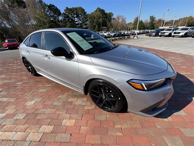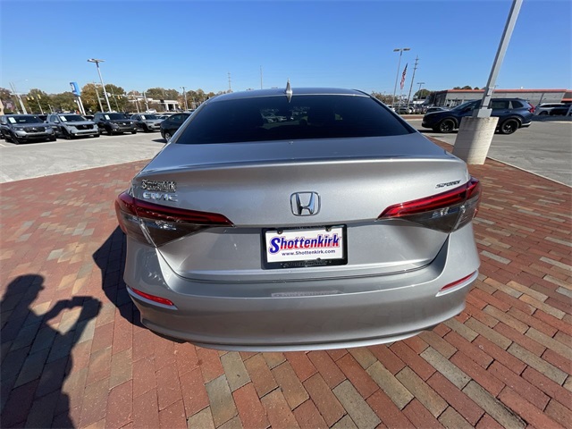 CARFAX One-Owner. Certified. 2024 Honda Civic Sport Sport Lunar Silver Metallic 4D Sedan 2.0L I4 DOHC 16V i-VTEC CVT FWD This vehicle comes well equipped with 4-Wheel Disc Brakes, 8 Speakers, ABS brakes, Adaptive Cruise Control: Adaptive Cruise Control (ACC) with Low-Speed Follow, Air Conditioning, Alloy wheels, AM/FM radio, Apple CarPlay/Android Auto, Auto High-beam Headlights, Automatic temperature control, Brake assist, Bumpers: body-color, Cloth/Leatherette Seating Surfaces, Delay-off headlights, Driver door bin, Driver vanity mirror, Dual front impact airbags, Dual front side impact airbags, Electronic Stability Control, Emergency communication system: HondaLink, Exterior Parking Camera Rear, Four wheel independent suspension, Front anti-roll bar, Front Bucket Seats, Front Center Armrest, Front reading lights, Fully automatic headlights, Illuminated entry, Knee airbag, Leather Shift Knob, Leather steering wheel, Low tire pressure warning, Occupant sensing airbag, Outside temperature display, Overhead airbag, Panic alarm, Passenger door bin, Passenger vanity mirror, Power door mirrors, Power steering, Power windows, Radio data system, Radio: 180-Watt Audio System, Rear anti-roll bar, Rear side impact airbag, Rear window defroster, Remote keyless entry, Security system, Speed control, Speed-sensing steering, Steering wheel mounted audio controls, Tachometer, Telescoping steering wheel, Tilt steering wheel, Traction control, Trip computer, and Wheels: 18" Gloss Black Alloy.