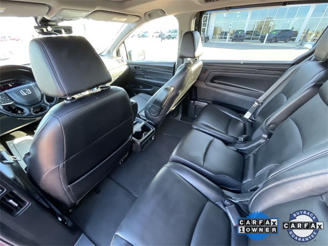 CARFAX One-Owner. Certified. 2024 Honda Odyssey EX-L EX-L Crystal Black Pearl 4D Passenger Van 3.5L V6 SOHC i-VTEC 24V 10-Speed Automatic FWD This vehicle comes well equipped with 18" Machine-Finished Alloy Wheels, 3.61 Axle Ratio, 3rd row seats: split-bench, 4-Wheel Disc Brakes, 7 Speakers, A/V remote: CabinControl, ABS brakes, Adaptive Cruise Control: Adaptive Cruise Control (ACC) with Low-Speed Follow, Air Conditioning, Alloy wheels, AM/FM radio: SiriusXM, Anti-whiplash front head restraints, Apple CarPlay/Android Auto, Auto High-beam Headlights, Auto-dimming Rear-View mirror, Automatic temperature control, Blind Spot Information (BSI) System warning, Brake assist, Bumpers: body-color, Delay-off headlights, Driver door bin, Driver vanity mirror, Driver's Seat Mounted Armrest, Dual front impact airbags, Dual front side impact airbags, Electronic Stability Control, Exterior Parking Camera Rear, Four wheel independent suspension, Front anti-roll bar, Front Bucket Seats, Front dual zone A/C, Front fog lights, Front reading lights, Fully automatic headlights, Garage door transmitter: HomeLink, Heated door mirrors, Heated Front Bucket Seats, Heated front seats, Illuminated entry, Knee airbag, Lane departure: Lane Keeping Assist System (LKAS) active, Leather Seat Trim, Leather steering wheel, Low tire pressure warning, Memory seat, Occupant sensing airbag, Outside temperature display, Overhead airbag, Overhead console, Panic alarm, Passenger door bin, Passenger seat mounted armrest, Passenger vanity mirror, Power door mirrors, Power driver seat, Power Liftgate, Power moonroof, Power passenger seat, Power steering, Power windows, Radio data system, Radio: 160-Watt AM/FM/HD/SiriusXM Audio System, Rear air conditioning, Rear anti-roll bar, Rear reading lights, Rear seat center armrest, Rear window defroster, Rear window wiper, Reclining 3rd row seat, Remote keyless entry, Security system, Speed control, Speed-sensing steering, Speed-Sensitive Wipers, Split folding rear seat, Spoiler, Steering wheel mounted audio controls, Tachometer, Telescoping steering wheel, Tilt steering wheel, Traction control, Trip computer, Turn signal indicator mirrors, and Variably intermittent wipers.
