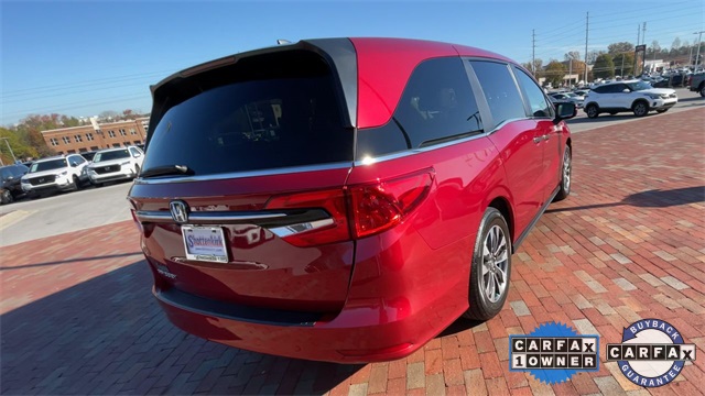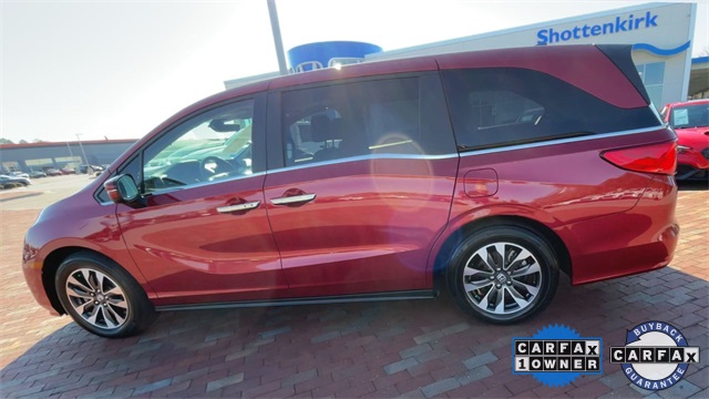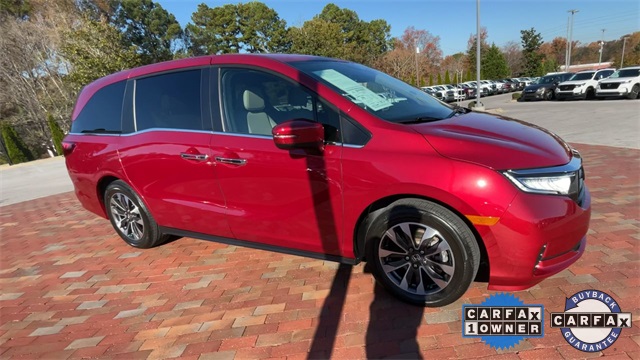 CARFAX One-Owner. Certified. 2024 Honda Odyssey EX-L EX-L Radiant Red Metallic II 4D Passenger Van 3.5L V6 SOHC i-VTEC 24V 10-Speed Automatic FWD This vehicle comes well equipped with 18" Machine-Finished Alloy Wheels, 3.61 Axle Ratio, 3rd row seats: split-bench, 4-Wheel Disc Brakes, 7 Speakers, A/V remote: CabinControl, ABS brakes, Adaptive Cruise Control: Adaptive Cruise Control (ACC) with Low-Speed Follow, Air Conditioning, Alloy wheels, AM/FM radio: SiriusXM, Anti-whiplash front head restraints, Apple CarPlay/Android Auto, Auto High-beam Headlights, Auto-dimming Rear-View mirror, Automatic temperature control, Blind Spot Information (BSI) System warning, Brake assist, Bumpers: body-color, Delay-off headlights, Driver door bin, Driver vanity mirror, Driver's Seat Mounted Armrest, Dual front impact airbags, Dual front side impact airbags, Electronic Stability Control, Exterior Parking Camera Rear, Four wheel independent suspension, Front anti-roll bar, Front Bucket Seats, Front dual zone A/C, Front fog lights, Front reading lights, Fully automatic headlights, Garage door transmitter: HomeLink, Heated door mirrors, Heated Front Bucket Seats, Heated front seats, Illuminated entry, Knee airbag, Lane departure: Lane Keeping Assist System (LKAS) active, Leather Seat Trim, Leather steering wheel, Low tire pressure warning, Memory seat, Occupant sensing airbag, Outside temperature display, Overhead airbag, Overhead console, Panic alarm, Passenger door bin, Passenger seat mounted armrest, Passenger vanity mirror, Power door mirrors, Power driver seat, Power Liftgate, Power moonroof, Power passenger seat, Power steering, Power windows, Radio data system, Radio: 160-Watt AM/FM/HD/SiriusXM Audio System, Rear air conditioning, Rear anti-roll bar, Rear reading lights, Rear seat center armrest, Rear window defroster, Rear window wiper, Reclining 3rd row seat, Remote keyless entry, Security system, Speed control, Speed-sensing steering, Speed-Sensitive Wipers, Split folding rear seat, Spoiler, Steering wheel mounted audio controls, Tachometer, Telescoping steering wheel, Tilt steering wheel, Traction control, Trip computer, Turn signal indicator mirrors, and Variably intermittent wipers.