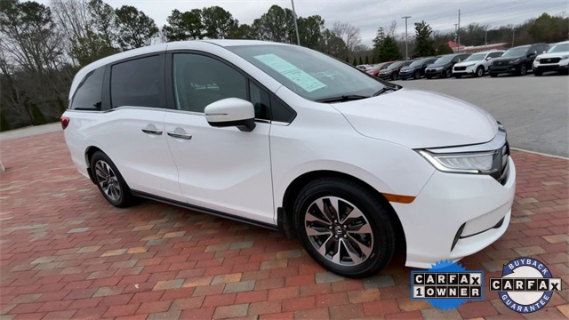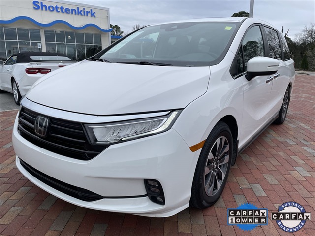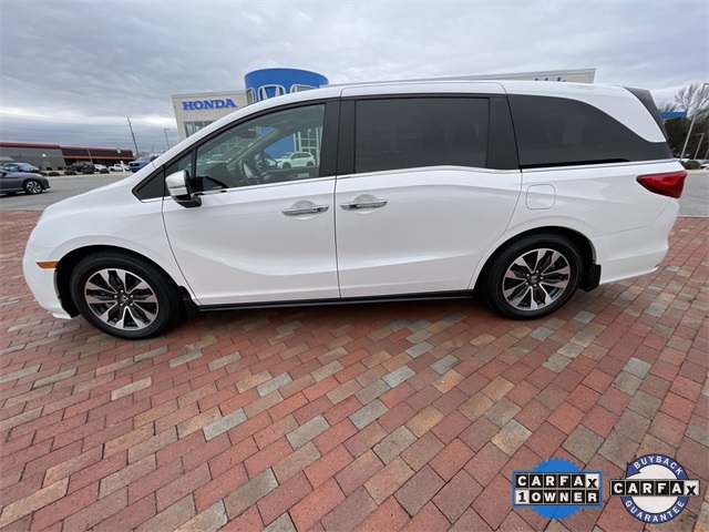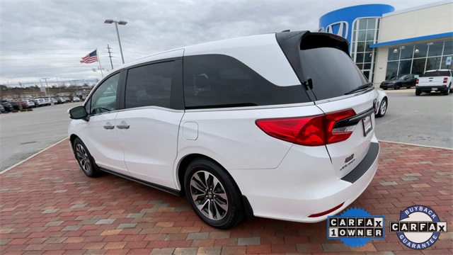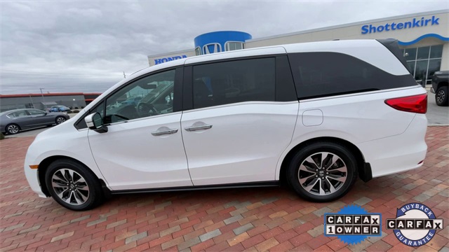 CARFAX One-Owner. Certified. 2024 Honda Odyssey EX-L EX-L Platinum White Pearl 4D Passenger Van 3.5L V6 SOHC i-VTEC 24V 10-Speed Automatic FWD This vehicle comes well equipped with 18" Machine-Finished Alloy Wheels, 3.61 Axle Ratio, 3rd row seats: split-bench, 4-Wheel Disc Brakes, 7 Speakers, A/V remote: CabinControl, ABS brakes, Adaptive Cruise Control: Adaptive Cruise Control (ACC) with Low-Speed Follow, Air Conditioning, Alloy wheels, AM/FM radio: SiriusXM, Anti-whiplash front head restraints, Apple CarPlay/Android Auto, Auto High-beam Headlights, Auto-dimming Rear-View mirror, Automatic temperature control, Blind Spot Information (BSI) System warning, Brake assist, Bumpers: body-color, Delay-off headlights, Driver door bin, Driver vanity mirror, Driver's Seat Mounted Armrest, Dual front impact airbags, Dual front side impact airbags, Electronic Stability Control, Exterior Parking Camera Rear, Four wheel independent suspension, Front anti-roll bar, Front Bucket Seats, Front dual zone A/C, Front fog lights, Front reading lights, Fully automatic headlights, Garage door transmitter: HomeLink, Heated door mirrors, Heated Front Bucket Seats, Heated front seats, Illuminated entry, Knee airbag, Lane departure: Lane Keeping Assist System (LKAS) active, Leather Seat Trim, Leather steering wheel, Low tire pressure warning, Memory seat, Occupant sensing airbag, Outside temperature display, Overhead airbag, Overhead console, Panic alarm, Passenger door bin, Passenger seat mounted armrest, Passenger vanity mirror, Power door mirrors, Power driver seat, Power Liftgate, Power moonroof, Power passenger seat, Power steering, Power windows, Radio data system, Radio: 160-Watt AM/FM/HD/SiriusXM Audio System, Rear air conditioning, Rear anti-roll bar, Rear reading lights, Rear seat center armrest, Rear window defroster, Rear window wiper, Reclining 3rd row seat, Remote keyless entry, Security system, Speed control, Speed-sensing steering, Speed-Sensitive Wipers, Split folding rear seat, Spoiler, Steering wheel mounted audio controls, Tachometer, Telescoping steering wheel, Tilt steering wheel, Traction control, Trip computer, Turn signal indicator mirrors, and Variably intermittent wipers.