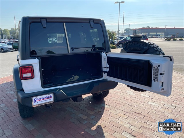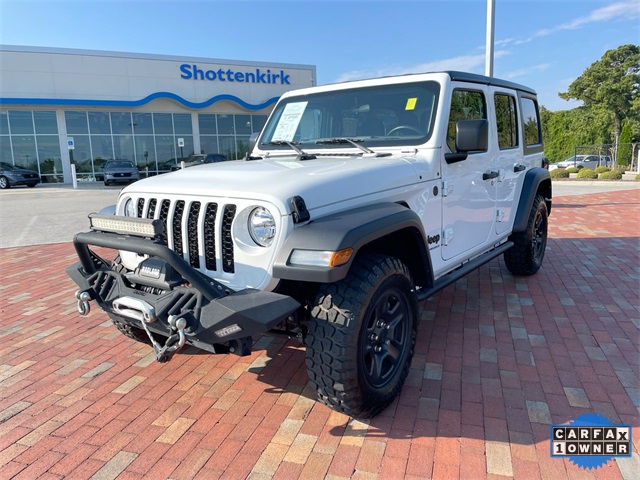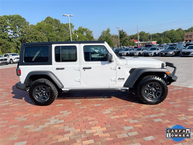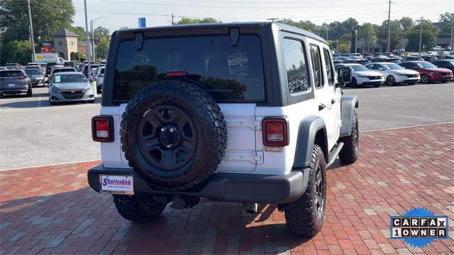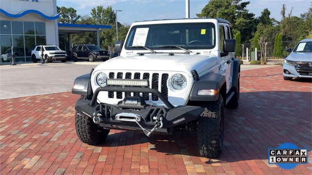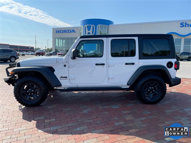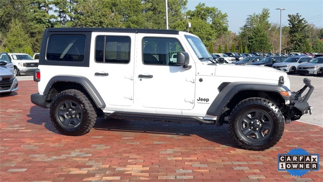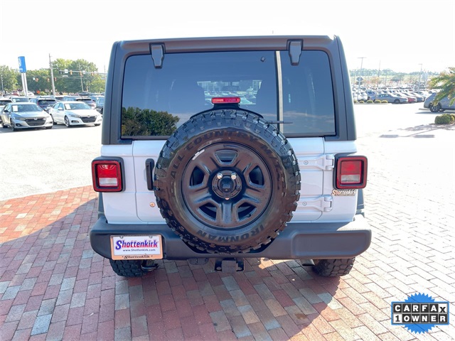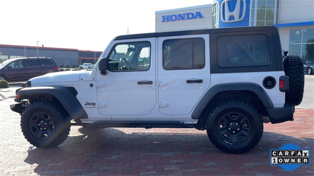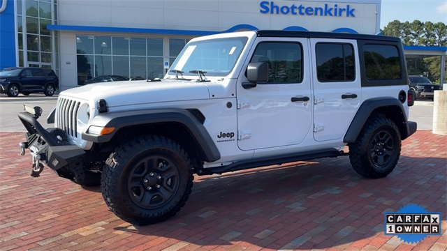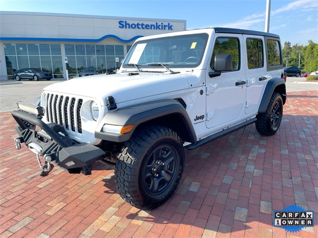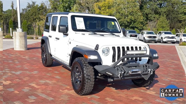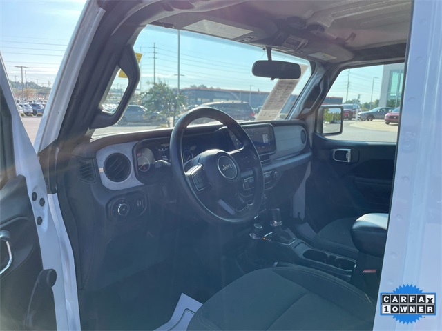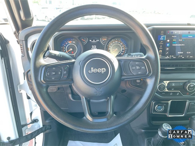 CARFAX One-Owner. 2024 Jeep Wrangler Sport Sport Bright White Clearcoat 4D Sport Utility 2.0L I4 DOHC 8-Speed Automatic 4WD This vehicle comes well equipped with Quick Order Package 22B Sport, 110 MPH Vehicle Max Speed Calibration, 3.45 Overall Top Gear Ratio, 4-Wheel Disc Brakes, 8 Speakers, ABS brakes, Air Conditioning, AM/FM radio, Apple CarPlay/Android Auto, Aux Battery, Black 3-Piece Hard Top, Brake assist, Cloth Low-Back Bucket Seats, Compass, Deep Tint Sunscreen Windows, Delay-off headlights, Driver door bin, Driver vanity mirror, Dual front impact airbags, Dual front side impact airbags, Electronic Stability Control, Freedom Panel Storage Bag, Front anti-roll bar, Front Bucket Seats, Front Center Armrest w/Storage, Front fog lights, Front reading lights, Integrated roll-over protection, Low tire pressure warning, MOPAR All-Weather Floor Mats, No Soft Top, Non-Lock Fuel Cap w/o Discriminator, Normal Duty Suspension, Occupant sensing airbag, Outside temperature display, Overhead airbag, ParkView Rear Back-Up Camera, Passenger door bin, Passenger vanity mirror, Power steering, Radio data system, Radio: Uconnect 5 w/12.3" Display, Rear anti-roll bar, Rear reading lights, Rear Window Defroster, Rear Window Wiper/Washer, Speed control, Split folding rear seat, Steering wheel mounted audio controls, Stop-Start Dual Battery System, Tachometer, Telescoping steering wheel, Tilt steering wheel, Traction control, Trip computer, Variably intermittent wipers, and Wheels: 17" x 7.5" Black Steel Styled.