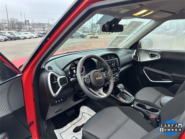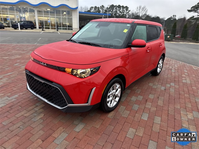 CARFAX One-Owner. 2024 Kia Soul LX LX Inferno Red 4D Hatchback 2.0L I4 DOHC CVT FWD This vehicle comes well equipped with LX Technology Package (6.5J x 16" Alloy Wheels, Blind-Spot Collision-Avoidance Assist, Lane Change Assist, and Rear Cross-Traffic Collision Avoidance Assist), 4-Wheel Disc Brakes, 6 Speakers, 6.5J x 16" Steel Wheels, ABS brakes, Air Conditioning, AM/FM radio, Apple CarPlay & Android Auto, Auto High-beam Headlights, Brake assist, Bumpers: body-color, Carpeted Floor Mats, Compass, Delay-off headlights, Driver door bin, Driver vanity mirror, Dual front impact airbags, Dual front side impact airbags, Electronic Stability Control, Exterior Parking Camera Rear, Front anti-roll bar, Front Bucket Seats, Front Center Armrest, Front reading lights, Front wheel independent suspension, Fully automatic headlights, Illuminated entry, Low tire pressure warning, Occupant sensing airbag, Outside temperature display, Overhead airbag, Overhead console, Panic alarm, Passenger door bin, Passenger vanity mirror, Power door mirrors, Power steering, Power windows, Radio data system, Radio: AM/FM/MP3/HD Audio System, Rear window defroster, Rear window wiper, Remote keyless entry, Speed control, Speed-sensing steering, Split folding rear seat, Steering wheel mounted audio controls, Tachometer, Telescoping steering wheel, Tilt steering wheel, Traction control, Trip computer, Variably intermittent wipers, and Woven & Tricot Cloth Seat Trim.