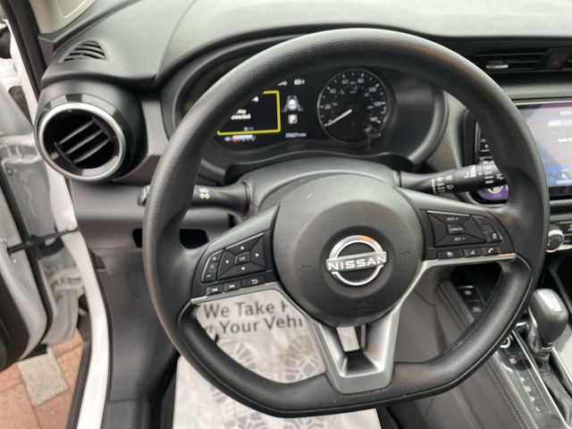 2024 Nissan Kicks SV SV Aspen White/Super Black 4D Sport Utility 1.6L 4-Cylinder DOHC 16V CVT with Xtronic FWD This vehicle comes well equipped with 3.93 Axle Ratio, 4-Wheel Disc Brakes, 6 Speakers, ABS brakes, Air Conditioning, Alloy wheels, AM/FM radio: SiriusXM, Apple CarPlay/Android Auto, Auto High-beam Headlights, Blind Spot Warning, Brake assist, Bumpers: body-color, Carpeted Floor Mats w/Cargo Mat, Cloth Seat Trim, Driver door bin, Driver vanity mirror, Dual front impact airbags, Dual front side impact airbags, Electronic Stability Control, Front anti-roll bar, Front Bucket Seats, Front Center Armrest, Front reading lights, Front wheel independent suspension, Fully automatic headlights, Heated door mirrors, Illuminated entry, Knee airbag, Low tire pressure warning, Occupant sensing airbag, Outside temperature display, Overhead airbag, Panic alarm, Passenger door bin, Passenger vanity mirror, Power door mirrors, Power steering, Power windows, Radio data system, Radio: AM/FM Audio System, Rear Parking Sensors, Rear reading lights, Rear side impact airbag, Rear window defroster, Rear window wiper, Remote keyless entry, Speed control, Splash Guards Grain (4 Piece), Split folding rear seat, Sport steering wheel, Steering wheel mounted audio controls, Tachometer, Telescoping steering wheel, Tilt steering wheel, Traction control, Trip computer, Variably intermittent wipers, and Wheels: 17" Alloy (5-Hole)