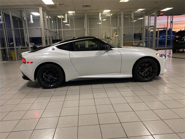 Everest White Pearl Tricoat/Super Black 2024 Nissan Z Performance RWD 6-Speed Manual 3.0L V6 4-Wheel Disc Brakes, 8 Speakers, ABS brakes, Air Conditioning, Alloy wheels, AM/FM radio: SiriusXM, Auto High-beam Headlights, Auto-dimming Rear-View mirror, Automatic temperature control, Blind Spot Warning, Brake assist, Bumpers: body-color, Compass, Delay-off headlights, Driver door bin, Driver vanity mirror, Dual front impact airbags, Dual front side impact airbags, Electronic Stability Control, Emergency communication system: NissanConnect Services, First Aid Kit, Floor Mat Package, Four wheel independent suspension, Front anti-roll bar, Front Bucket Seats, Front Center Armrest, Front reading lights, Fully automatic headlights, Garage door transmitter, Heated door mirrors, Heated Front Bucket Seats, Heated front seats, Illuminated Kick Plate - Black Metallic, Interior Door Scuff Protection, Leather Shift Knob, Leather steering wheel, Leather-Appointed Seat Trim, Low tire pressure warning, Navigation system: NissanConnect with Navigation and Services, Occupant sensing airbag, Outside temperature display, Overhead airbag, Panic alarm, Passenger door bin, Passenger vanity mirror, Power door mirrors, Power driver seat, Power passenger seat, Power steering, Power windows, Radio data system, Radio: Bose Audio System w/8 Speakers, Rear anti-roll bar, Rear window defroster, Remote keyless entry, Security system, Speed control, Speed-sensing steering, Spoiler, Steering wheel mounted audio controls, SynchroRev Match, Tachometer, Telescoping steering wheel, Tilt steering wheel, Traction control, Trip computer, Turn signal indicator mirrors, Variably intermittent wipers, Voltmeter, Wheels: 19" RAYS Super-Lightweight Forged Alloy.