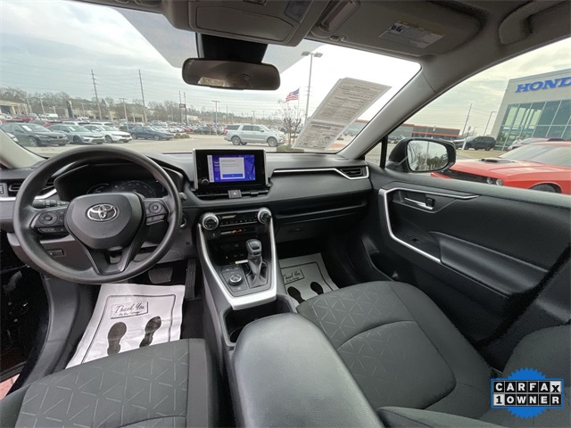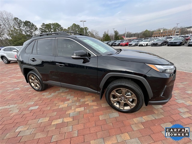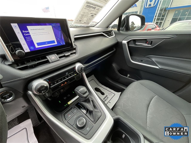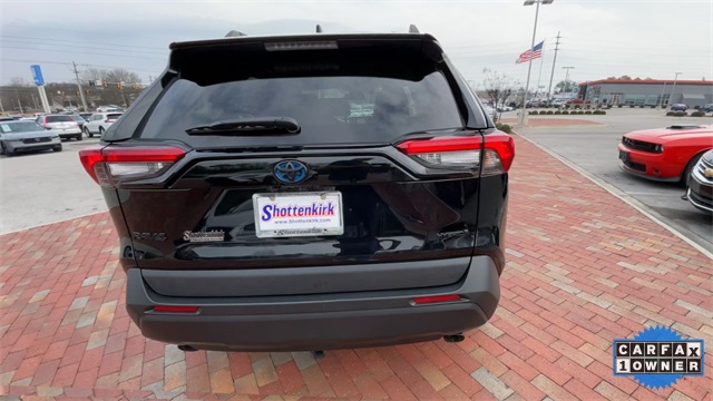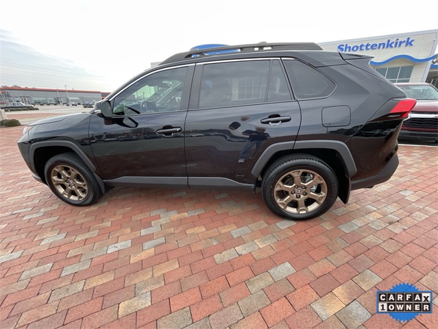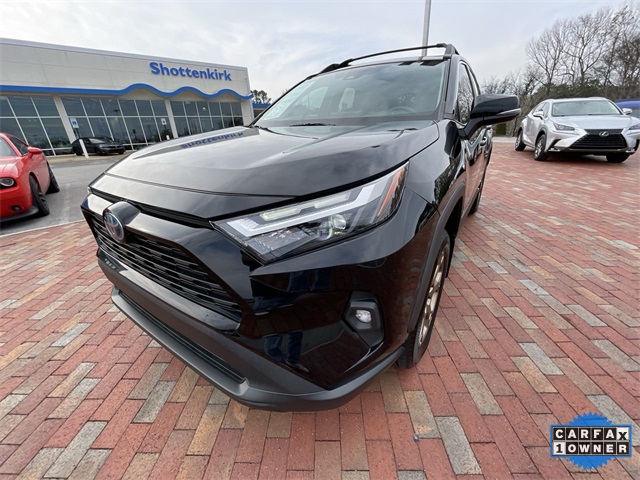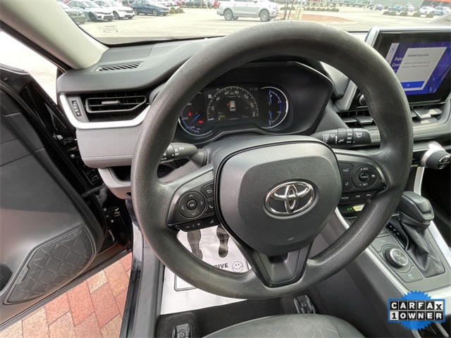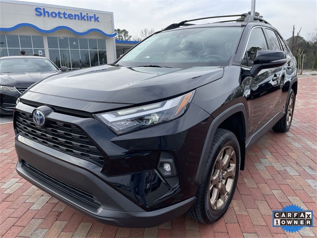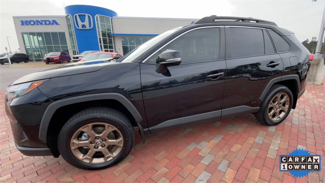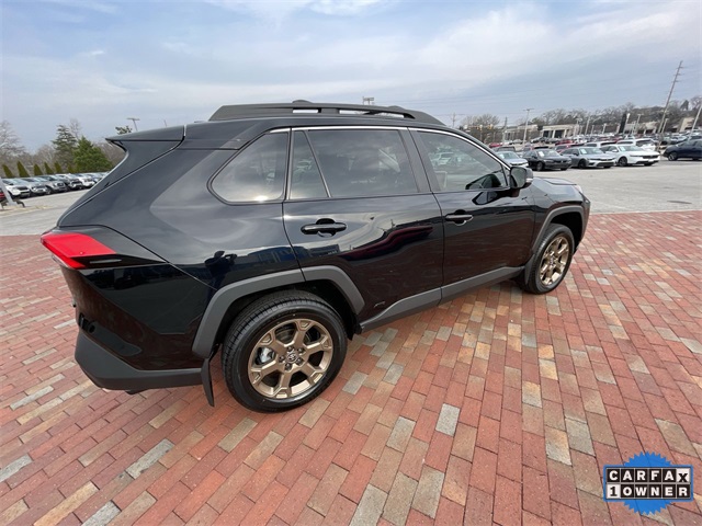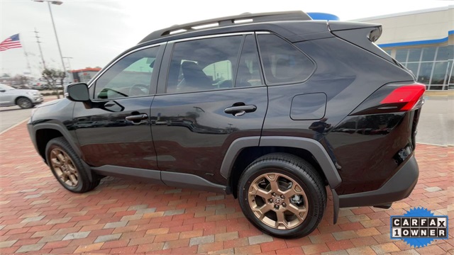 CARFAX One-Owner. 2024 Toyota RAV4 Hybrid Woodland Edition Woodland Edition Black 4D Sport Utility 2.5L 4-Cylinder eCVT AWD This vehicle comes well equipped with 18" x 7.0J Alloy Wheels, 4-Wheel Disc Brakes, 6 Speakers, ABS brakes, Air Conditioning, Alloy wheels, AM/FM radio: SiriusXM, Auto High-beam Headlights, Automatic temperature control, Axle Ratio: TBD, Brake assist, Bumpers: body-color, Delay-off headlights, Driver door bin, Driver vanity mirror, Dual front impact airbags, Dual front side impact airbags, Electronic Stability Control, Emergency communication system: Safety Connect (1-year trial), Exterior Parking Camera Rear, Fabric Seat Trim, Four wheel independent suspension, Front anti-roll bar, Front Bucket Seats, Front Center Armrest, Front dual zone A/C, Front fog lights, Front reading lights, Fully automatic headlights, Heated door mirrors, Illuminated entry, Knee airbag, Low tire pressure warning, Occupant sensing airbag, Outside temperature display, Overhead airbag, Overhead console, Panic alarm, Passenger door bin, Passenger vanity mirror, Power door mirrors, Power driver seat, Power steering, Power windows, Radio data system, Radio: AM/FM/XM Audio System, Rear anti-roll bar, Rear seat center armrest, Rear window defroster, Rear window wiper, Remote keyless entry, Roof rack, Speed control, Speed-sensing steering, Split folding rear seat, Spoiler, Steering wheel mounted audio controls, Telescoping steering wheel, Tilt steering wheel, Traction control, Trip computer, Turn signal indicator mirrors, and Variably intermittent wipers.