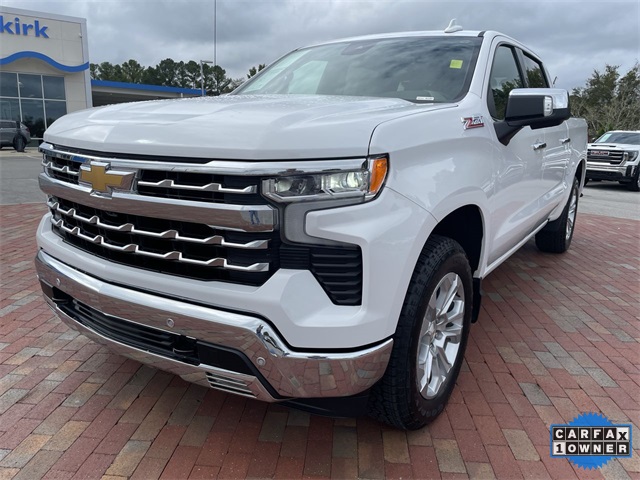 CARFAX One-Owner. 2025 Chevrolet Silverado 1500 LTZ LTZ Summit White 4D Crew Cab EcoTec3 5.3L V8 10-Speed Automatic 4WD This vehicle comes well equipped with LTZ Convenience Package (2 USB Data Ports, Floor Mounted Center Console, Power Tilt & Telescoping Steering Column, Premium Bose 7-Speaker Sound System, Ventilated Driver & Front Passenger Seats, and Wireless Charging), Z71 Off-Road & Protection Package (All-Weather Floor Liner (LPO) (AAK) and Chevytec Spray-On Black Bedliner), and Z71 Off-Road Package (Dual Exhaust w/Black Exhaust Tips, Heavy-Duty Air Filter, Hill Descent Control, and Off-Road Suspension) LTZ Convenience Package (2 USB Data Ports, Floor Mounted Center Console, Power Tilt & Telescoping Steering Column, Premium Bose 7-Speaker Sound System, Ventilated Driver & Front Passenger Seats, and Wireless Charging), Z71 Off-Road & Protection Package (All-Weather Floor Liner (LPO) (AAK) and Chevytec Spray-On Black Bedliner), Z71 Off-Road Package (Dual Exhaust w/Black Exhaust Tips, Heavy-Duty Air Filter, Hill Descent Control, and Off-Road Suspension), High Capacity Suspension Package, LTZ Convenience Package II (2nd Row Heated Outboard Seats, Adaptive Cruise Control, Power Sliding Rear Window w/Rear Defogger, and Universal Home Remote), LTZ Plus Package, Preferred Equipment Group 1LZ (10-Way Power Driver Seat w/Lumbar, 10-Way Power Passenger Seat Adjuster w/Lumbar, 12.3" Multicolor Reconfigurable Digital Display, 120-Volt Bed Mounted Power Outlet, 120-Volt Interior Power Outlet, Auto-Dimming Inside Rear-View Mirror, Auto-Locking Rear Differential, Bluetooth® For Phone, Chrome Mirror Caps, Color-Keyed Carpeting Floor Covering, Deep-Tinted Glass, Driver Memory, Dual Rear USB Ports (Charge Only), Electric Rear-Window Defogger, Electronic Cruise Control, Front Frame-Mounted Black Recovery Hooks, Front LED Fog Lamps, Front Rain-Sensing Wipers, Front Rubberized Vinyl Floor Mats, Heated Driver & Front Outboard Passenger Seats, Heated Steering Wheel, Hitch Guidance w/Hitch View, In-Vehicle Trailering System App, Integrated Trailer Brake Controller, Keyless Open & Start, LED Cargo Area Lighting, OnStar Services Capable, Outside Heated Power-Adjustable Mirrors, Power Front Passenger Windows w/Express Up/Down, Power Front Windows w/Driver Express Up/Down, Power Rear Windows w/Express Down, Power Tailgate, Rear Rubberized-Vinyl Floor Mats, Rear Wheelhouse Liners, Remote Vehicle Starter System, SiriusXM w/360L Trial Subscription, Standard Tailgate, Steering Wheel Audio Controls, Teen Driver, Theft Deterrent System (Unauthorized Entry), Tire Pressure Monitoring System, Wi-Fi Hot Spot Capable, and Wrapped Steering Wheel), Safety Package (HD Surround Vision, Perimeter Lighting, Rear Cross Traffic Braking, Rear Pedestrian Alert, Safety Alert Seat, Trailer Camera Provisions, Trailer Side Blind Zone Alert, and Ultrasonic Front & Rear Park Assist), Trailering Package (Hitch Guidance), Up-Level Rear Seat w/Storage Package, 170 Amp Alternator, 3.23 Rear Axle Ratio, 4-Wheel Disc Brakes, 7 Speakers, ABS brakes, Air Conditioning, Alloy wheels, AM/FM radio: SiriusXM with 360L, Apple CarPlay/Android Auto, Auto High-beam Headlights, Auto-dimming door mirrors, Auto-dimming Rear-View mirror, Automatic Emergency Braking, Automatic temperature control, Brake assist, Bumpers: chrome, Compass, Delay-off headlights, Driver door bin, Driver vanity mirror, Dual Exhaust w/Polished Outlets, Dual front impact airbags, Dual front side impact airbags, Electronic Stability Control, Electronic Transmission Range Selector Shifter, Emergency communication system: OnStar, Following Distance Indicator, Forward Collision Alert, Front anti-roll bar, Front Bucket Seats, Front Center Armrest, Front dual zone A/C, Front fog lights, Front License Plate Kit, Front Pedestrian Braking, Front reading lights, Front wheel independent suspension, Fully automatic headlights, Heated door mirrors, Heated front seats, Heated steering wheel, Illuminated entry, IntelliBeam Automatic H