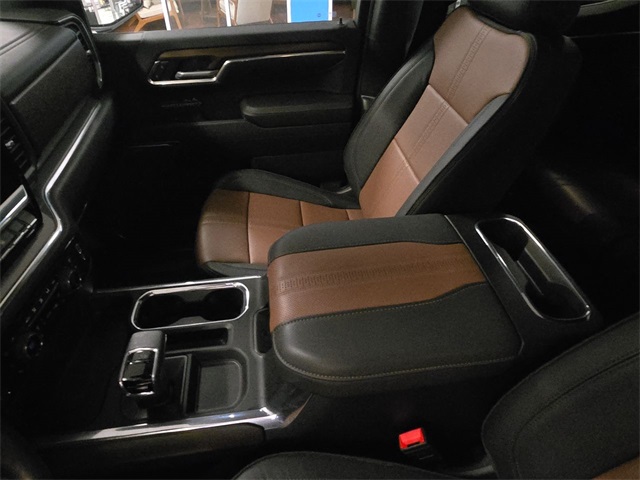 Black 2025 Chevrolet Silverado 1500 High Country 4WD 10-Speed Automatic EcoTec3 5.3L V8 10-Way Power Driver Seat w/Lumbar, 10-Way Power Passenger Seat Adjuster w/Lumbar, 12.3" Multicolor Reconfigurable Digital Display, 120-Volt Bed Mounted Power Outlet, 120-Volt Interior Power Outlet, 15" Diagonal Multicolor Head-Up Display, 170 Amp Alternator, 2 USB Data Ports, 2nd Row Heated Outboard Seats, 3.23 Rear Axle Ratio, 4-Wheel Disc Brakes, 7 Speakers, ABS brakes, Adaptive Cruise Control, Adaptive Ride Control Suspension, Air Conditioning, All-Weather Floor Liner (LPO), Alloy wheels, AM/FM radio: SiriusXM with 360L, Apple CarPlay/Android Auto, Auto High-beam Headlights, Auto-dimming door mirrors, Auto-Dimming Inside Rear-View Mirror, Auto-dimming Rear-View mirror, Auto-Locking Rear Differential, Automatic temperature control, Bed View Camera, Bluetooth® For Phone, Body-Color Painted Mirror Caps, Bodyside moldings, Brake assist, Bumpers: body-color, Chevytec Spray-On Black Bedliner, Chrome Assist Steps, Chrome Recovery Hooks, Color-Keyed Carpeting Floor Covering, Compass, Deep-Tinted Glass, Delay-off headlights, Driver door bin, Driver Memory, Driver vanity mirror, Dual Exhaust w/Polished Outlets, Dual front impact airbags, Dual front side impact airbags, Dual Rear USB Ports (Charge Only), Electric Rear-Window Defogger, Electronic Stability Control, Electronic Transmission Range Selector Shifter, Emergency communication system: OnStar, Enhanced Automatic Emergency Braking, Floor Mounted Center Console, Following Distance Indicator, Forward Collision Alert, Front anti-roll bar, Front Bucket Seats, Front Carpeted Floor Mats, Front Center Armrest, Front dual zone A/C, Front fog lights, Front LED Fog Lamps, Front Pedestrian Braking, Front Rain-Sensing Wipers, Front reading lights, Front wheel independent suspension, Fully automatic headlights, Garage door transmitter, Genuine wood console insert, Genuine wood dashboard insert, Genuine wood door panel insert, HD Surround Vision, Heated door mirrors, Heated Driver & Front Outboard Passenger Seats, Heated front seats, Heated rear seats, Heated Steering Wheel, Heated steering wheel, High Capacity Suspension Package, High Country Premium Package, Hitch Guidance, Hitch Guidance w/Hitch View, Illuminated entry, In-Vehicle Trailering System App, Integrated Trailer Brake Controller, IntelliBeam Automatic High Beam On/Off, Keyless Open & Start, Lane Keep Assist w/Lane Departure Warning, LED Cargo Area Lighting, Low tire pressure warning, Memory seat, Occupant sensing airbag, OnStar Services Capable, Outside Heated Power-Adjustable Mirrors, Outside temperature display, Overhead airbag, Overhead console, Panic alarm, Passenger door bin, Passenger vanity mirror, Perforated Leather Seat Trim, Perimeter Lighting, Power door mirrors, Power driver seat, Power Front Passenger Windows w/Express Up/Down, Power Front Windows w/Driver Express Up/Down, Power passenger seat, Power Rear Windows w/Express Down, Power Sliding Rear Window w/Rear Defogger, Power steering, Power Sunroof, Power Tailgate, Power Tilt & Telescoping Steering Column, Power windows, Preferred Equipment Group 3LZ, Premium audio system: Chevrolet Infotainment 3 Premium, Premium Bose 7-Speaker Sound System, Radio data system, Radio: Chevrolet Infotainment 3 Premium System, Rain sensing wipers, Rear Camera Mirror, Rear Carpeted Floor Mats, Rear Cross Traffic Braking, Rear Pedestrian Alert, Rear reading lights, Rear seat center armrest, Rear step bumper, Rear Wheelhouse Liners, Rear window defroster, Remote keyless entry, Remote Vehicle Starter System, Safety Alert Seat, Security system, SiriusXM w/360L Trial Subscription, Speed control, Speed-sensing steering, Split folding rear seat, Standard Tailgate, Steering Wheel Audio Controls, Steering wheel mounted audio controls, Tachometer, Technology Package, Teen Driver, Telescoping steering wheel, Theft Deterrent System (Unauthorized Entry), Tilt steering wheel, Tire Pressure Monitoring System, Tr