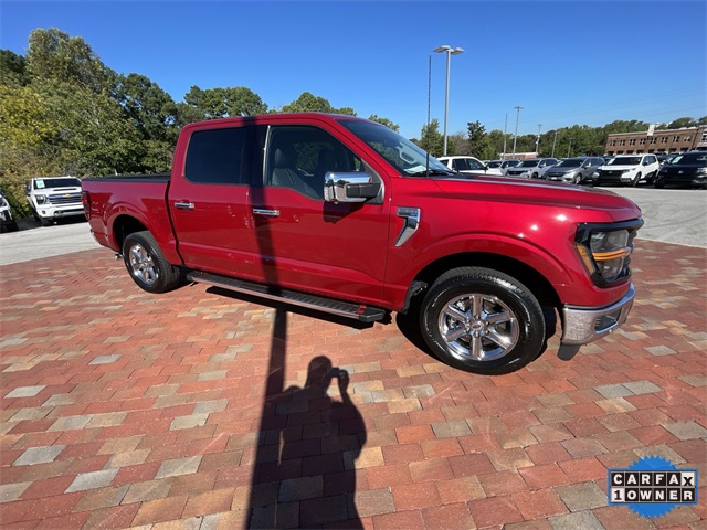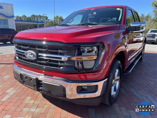 CARFAX One-Owner. 2025 Ford F-150 XLT XLT Red Metallic 4D SuperCrew 5.0L V8 10-Speed Automatic RWD This vehicle comes well equipped with Equipment Group 302A Mid (360 Degree Camera, 400W Cab & Bed Outlets, 6" Angular Bright Anodized Step Bar, Adaptive Cruise Control w/Stop & Go, Auto-Dimming Rear-View Mirror, Black Painted Grille w/Chrome Center Bar, Chrome Door & Tailgate Handles, Chrome Single-Tip Exhaust, Cloth 40/Console/40 Front Seats, Connected Navigation, Driver State Detection, Dual-Zone Electronic Automatic Temperature Control, Evasive Steering Assist, Ford Co-Pilot360 Assist 2.0, Front Parking Sensors, Heated Front Seats, Intelligent Access w/Push Button Start, Power Glass Heated Sideview Mirrors, Power-Sliding Rear Window, Remote Start System w/Remote Tailgate Release, Towing Technology, and Wrapped Steering Wheel) Equipment Group 302A Mid (360 Degree Camera, 400W Cab & Bed Outlets, 6" Angular Bright Anodized Step Bar, Adaptive Cruise Control w/Stop & Go, Auto-Dimming Rear-View Mirror, Black Painted Grille w/Chrome Center Bar, Chrome Door & Tailgate Handles, Chrome Single-Tip Exhaust, Cloth 40/Console/40 Front Seats, Connected Navigation, Driver State Detection, Dual-Zone Electronic Automatic Temperature Control, Evasive Steering Assist, Ford Co-Pilot360 Assist 2.0, Front Parking Sensors, Heated Front Seats, Intelligent Access w/Push Button Start, Power Glass Heated Sideview Mirrors, Power-Sliding Rear Window, Remote Start System w/Remote Tailgate Release, Towing Technology, and Wrapped Steering Wheel), GVWR: 6,426 lbs Payload Package, 4-Wheel Disc Brakes, 6 Speakers, ABS brakes, Air Conditioning, Alloy wheels, AM/FM radio: SiriusXM with 360L, Auto High-beam Headlights, Brake assist, Bumpers: chrome, Cloth 40/20/40 Front Seat, Compass, Delay-off headlights, Driver door bin, Driver vanity mirror, Dual front impact airbags, Dual front side impact airbags, Electronic Stability Control, Emergency communication system: SYNC 4 911 Assist, Front anti-roll bar, Front Center Armrest, Front fog lights, Front License Plate Bracket, Front reading lights, Front wheel independent suspension, Fully automatic headlights, Heated door mirrors, Illuminated entry, Low tire pressure warning, Occupant sensing airbag, Outside temperature display, Overhead airbag, Overhead console, Panic alarm, Passenger door bin, Passenger vanity mirror, Power door mirrors, Power steering, Power windows, Radio data system, Radio: AM/FM Stereo w/SiriusXM 360L, Rear Parking Sensors, Rear reading lights, Rear step bumper, Rear window defroster, Remote keyless entry, Security system, Speed control, Split folding rear seat, Steering wheel mounted audio controls, SYNC 4 w/Enhanced Voice Recognition, Tachometer, Telescoping steering wheel, Tilt steering wheel, Traction control, Tray Style Floor Liner w/Carpet Mats, Trip computer, Variably intermittent wipers, Voltmeter, and Wheels: 17" Silver Painted Aluminum.
